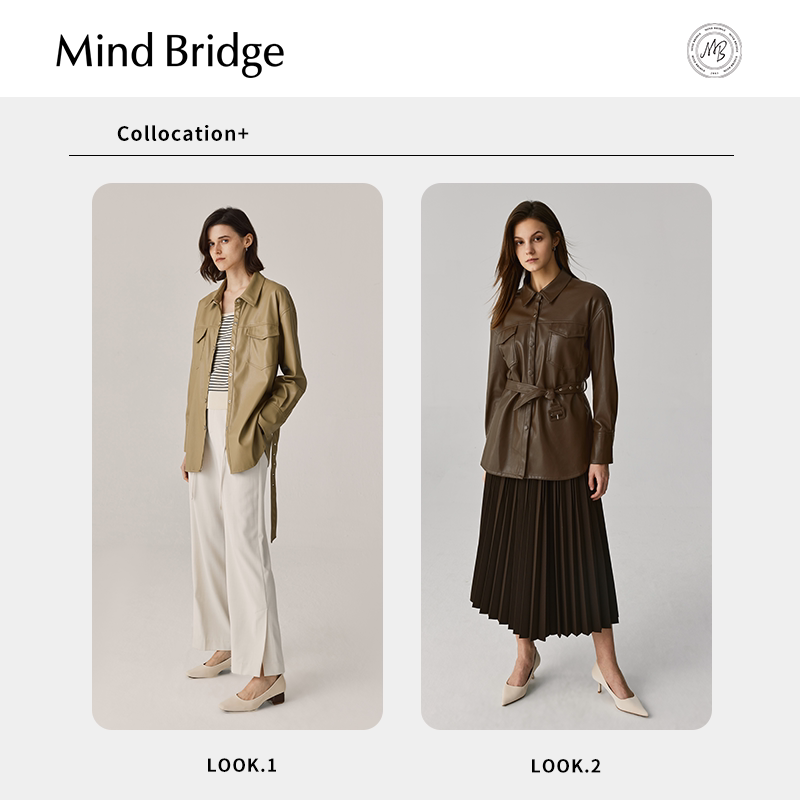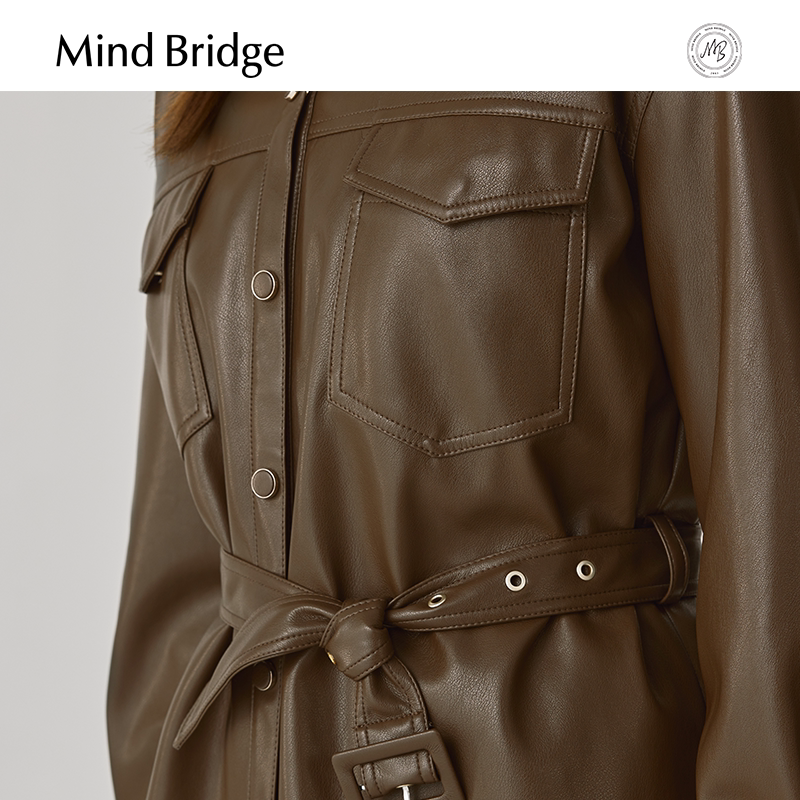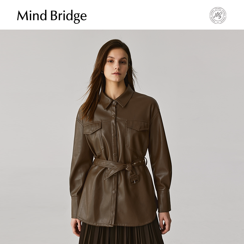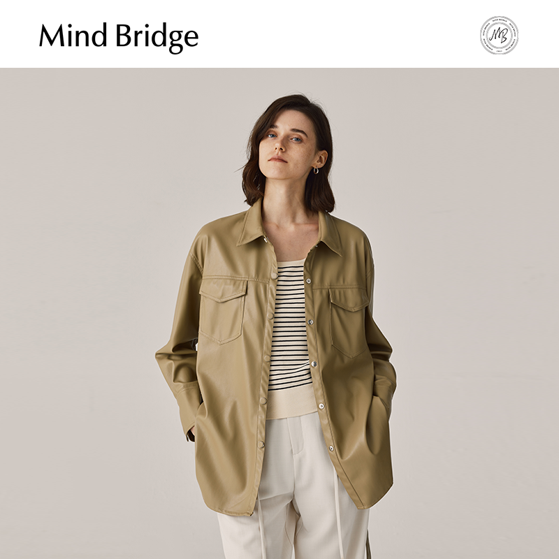 MB MindBridge女士美拉德皮衣2026新款PU皮外套春季美式复古夹克