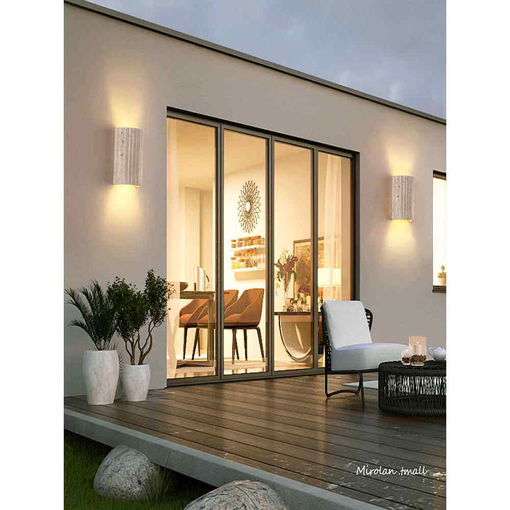 条纹透光黄洞石户外壁灯防水楼梯庭院门口复古室外阳台别墅氛围灯