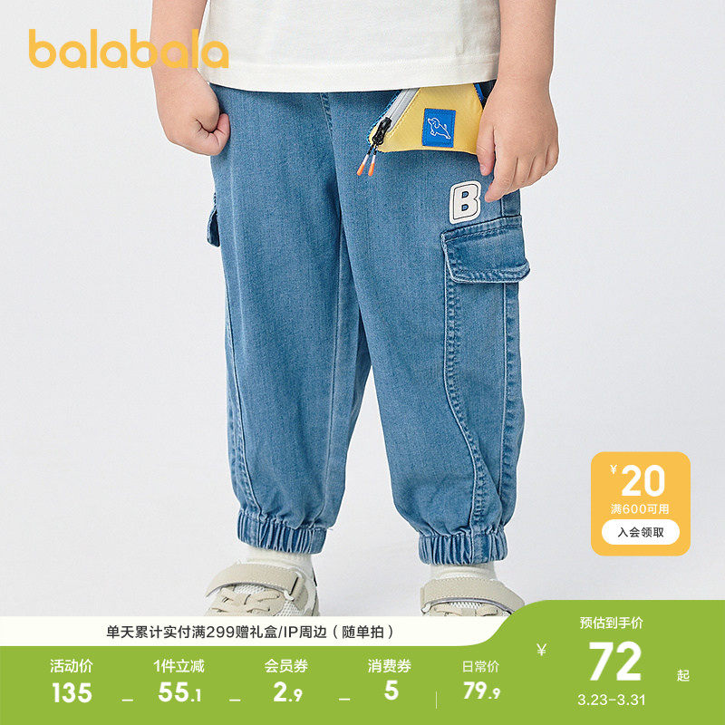 巴拉巴拉童装儿童长裤工装牛仔裤男童裤子夏季宽松束脚裤时尚百搭