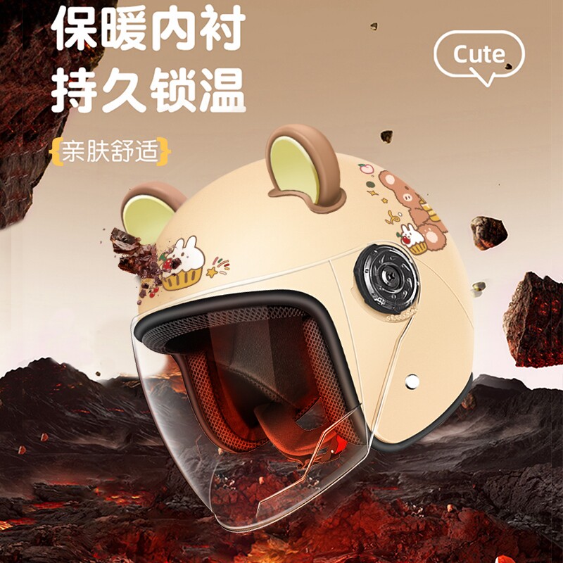 电动车头盔女3c认证电瓶摩托车冬季保暖2025新款可爱半盔安全帽