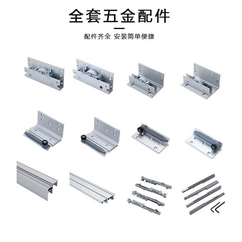 全铝合金推拉双向电视柜衣柜轨道内门外门滑轨平移门缓冲五金配件