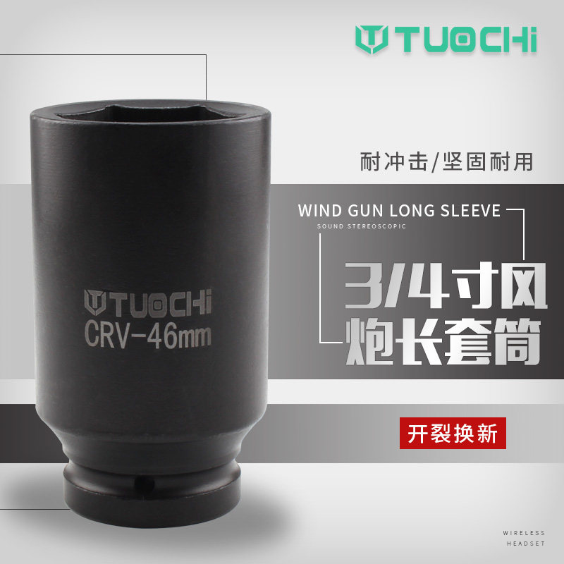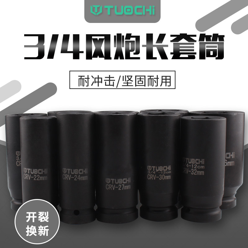 加长风炮套筒 3/4中风炮筒头重型气动扳手六角中型风炮套头32 36