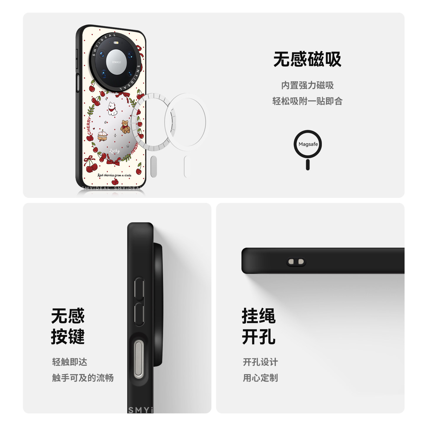 适用华为mate80手机壳mate60pro新款mate60磁吸款mate70pro外壳mate70保护套mate80promax的mate镜面樱桃pro+