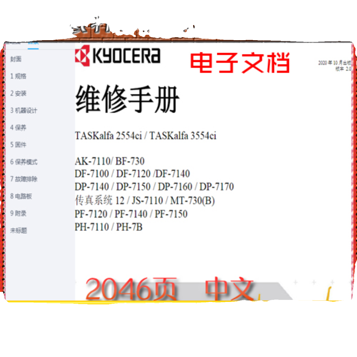 京瓷 TASKalfa 2554ci 3554ci 彩色复印机中文维修手册+零件手册