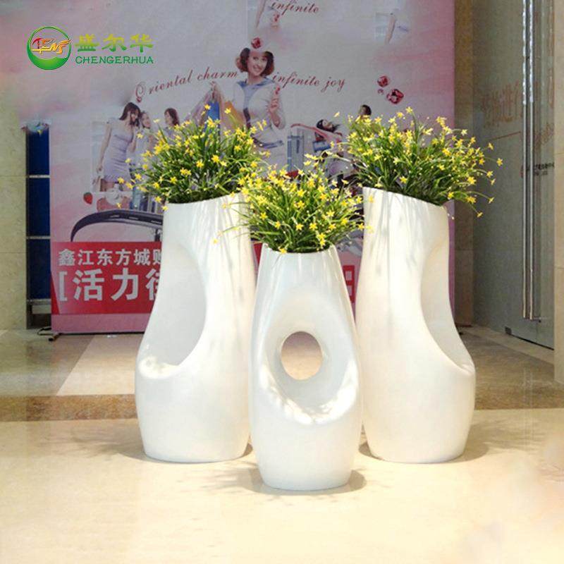 异形玻璃钢落地花盆户外花缸花器园艺花柱商场美陈花瓶雕塑摆件