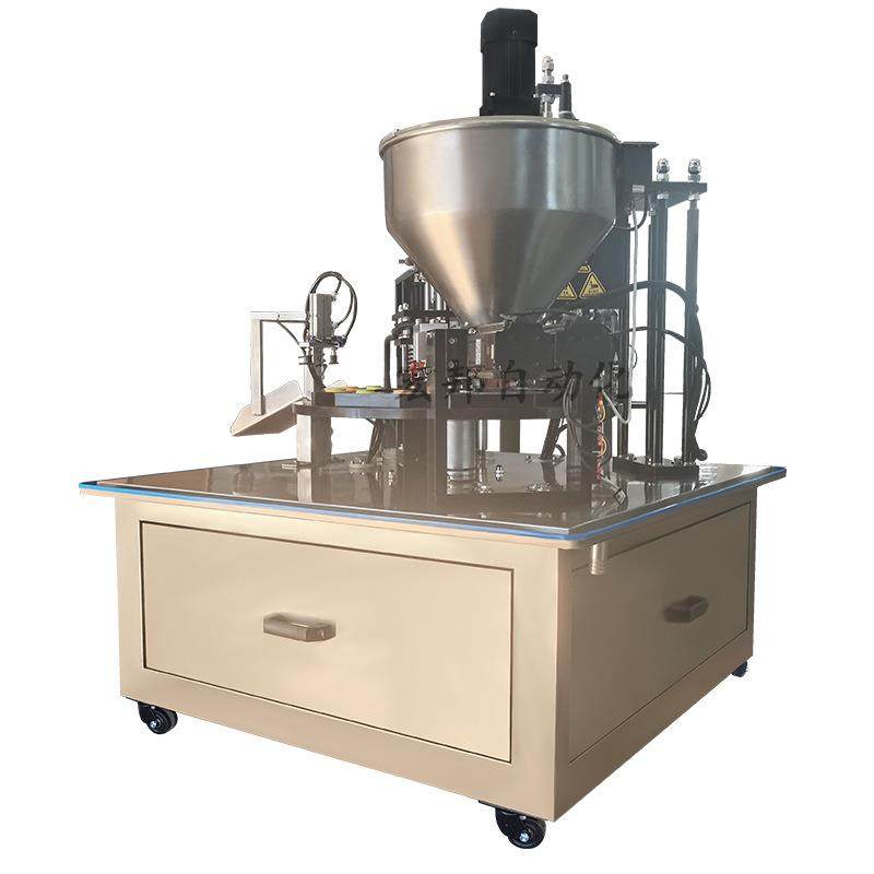 厂家直供 全自动转盘式灌装封口机酸奶果冻封杯机全自动灌装封盒