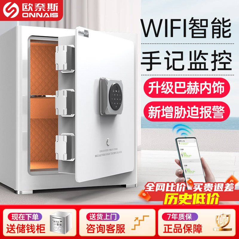【新品推荐】欧奈斯保险柜防盗报警办公夹万全钢入墙家用小型保险箱远程WiFi智能保管箱指纹锁45cm60cm床头柜