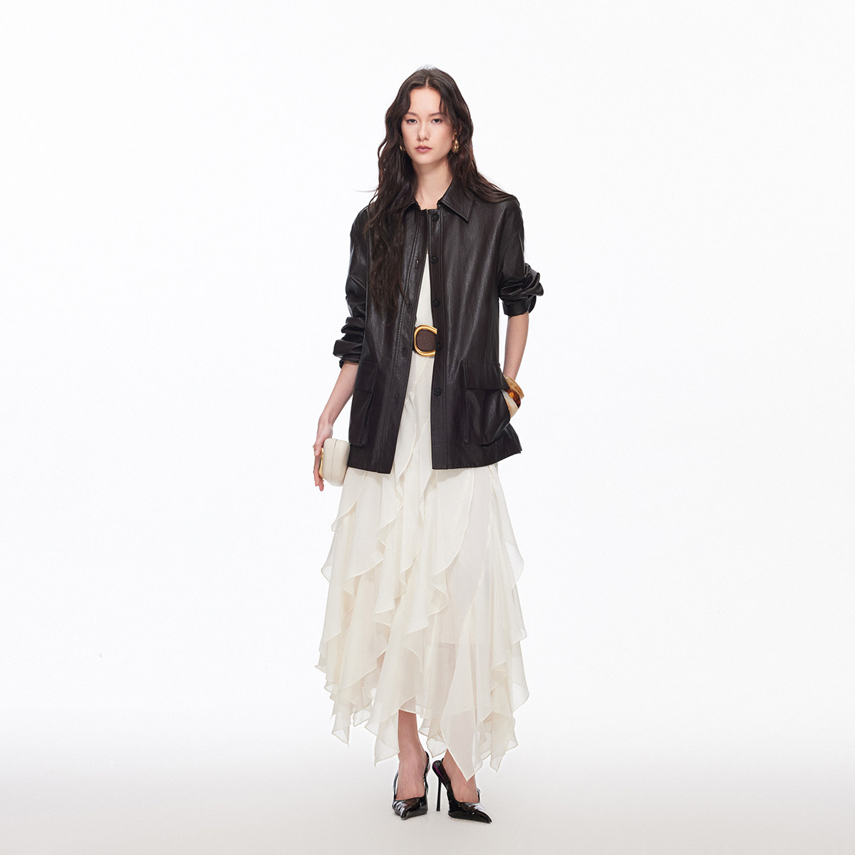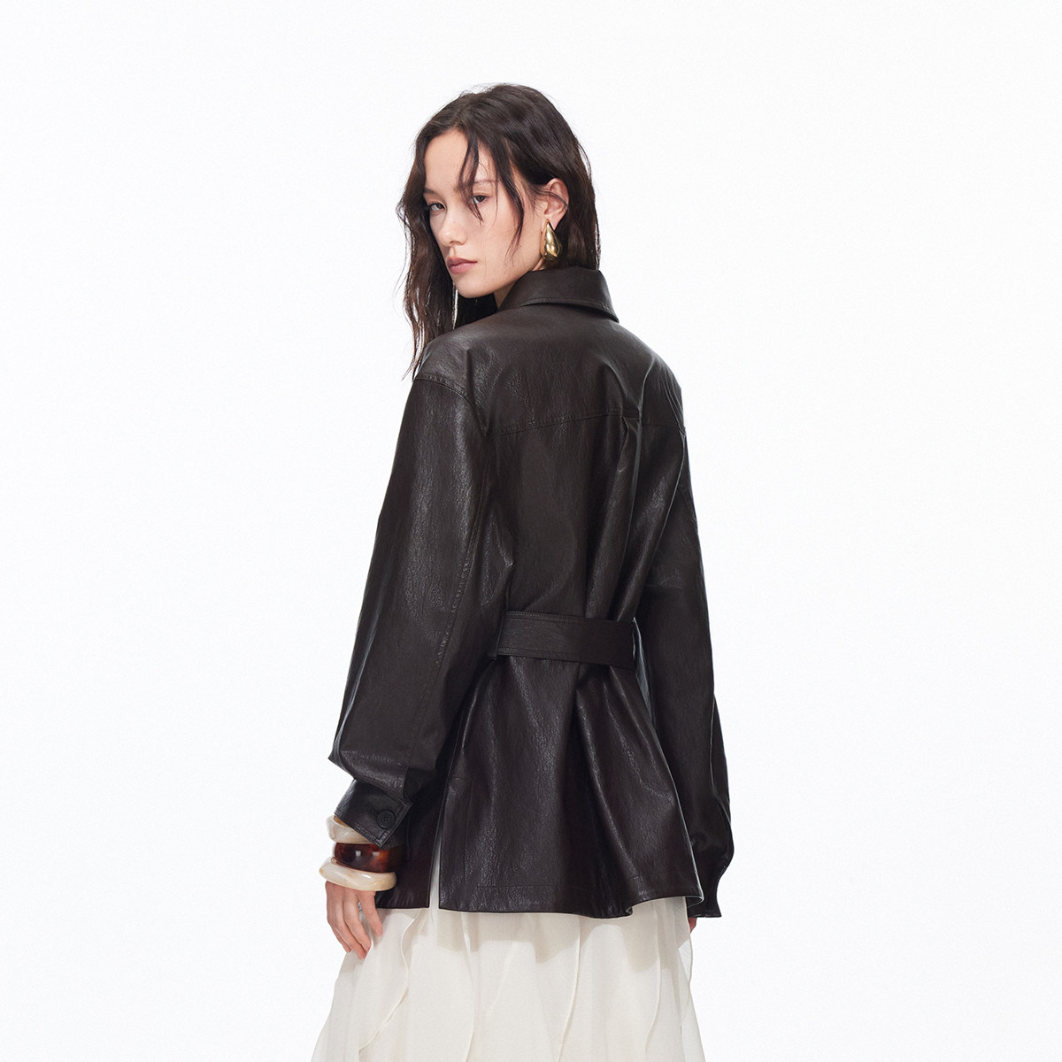 Vero Moda皮衣外套风衣2026春季新款PU仿皮中长款可收腰326109001