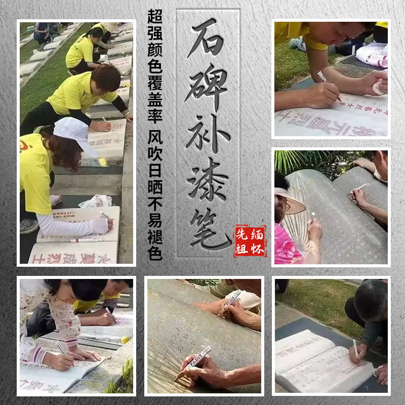 杰利碑文补漆笔清明节修补翻新石碑专用油漆笔红色绿色黑白色油性不掉色金色描碑笔金漆描字笔防水防晒不掉色
