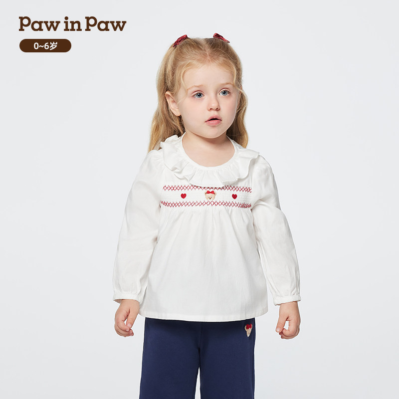 PawinPaw卡通小熊童装26年新款女宝宝儿童翻领衬衫T恤宽松优雅