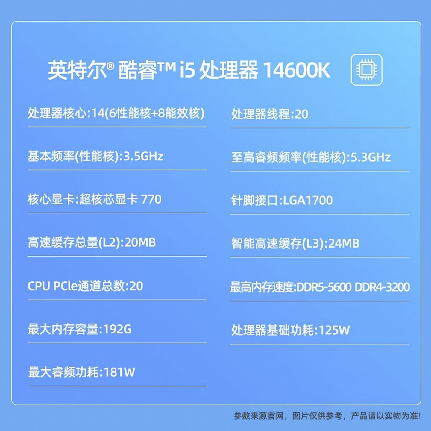 英特尔14600K 全新盒装 酷睿14代 处理器 14核20线程带核显不涂码