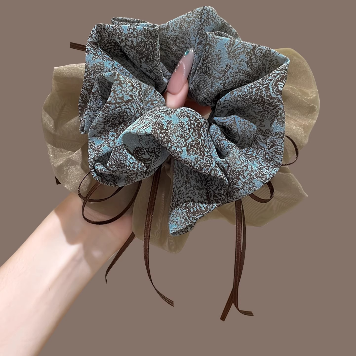 新中式蝴蝶结双层大肠发圈女小蛮腰低马尾发绳扎丸子头花发饰皮筋