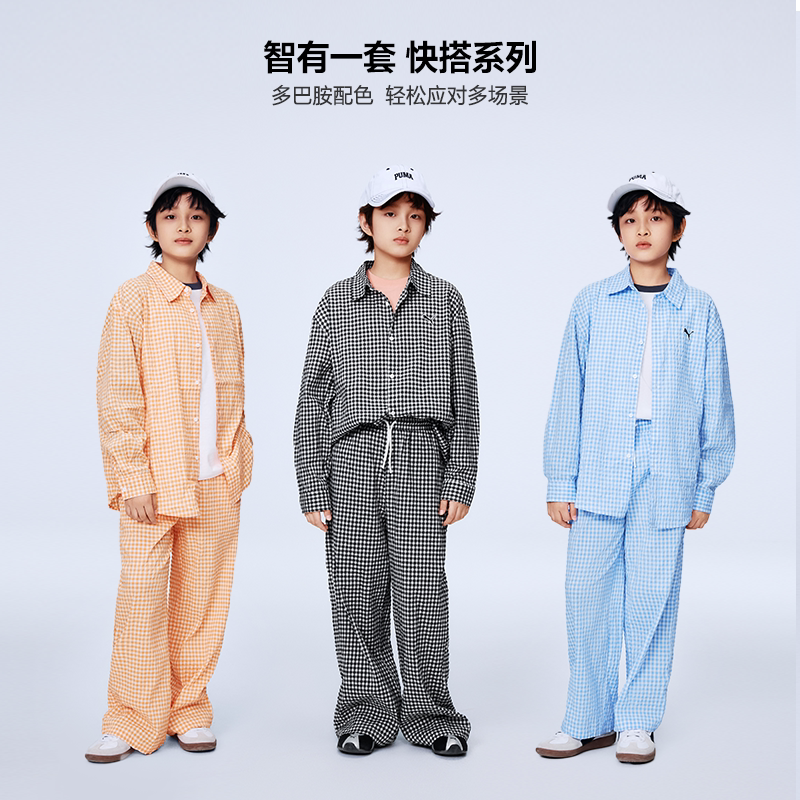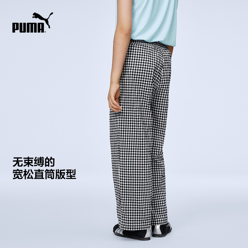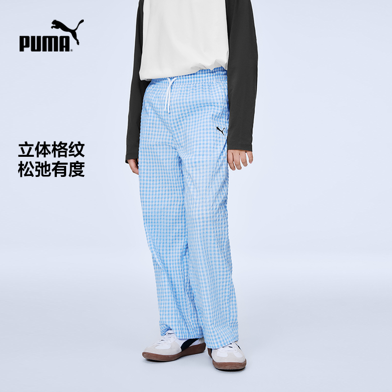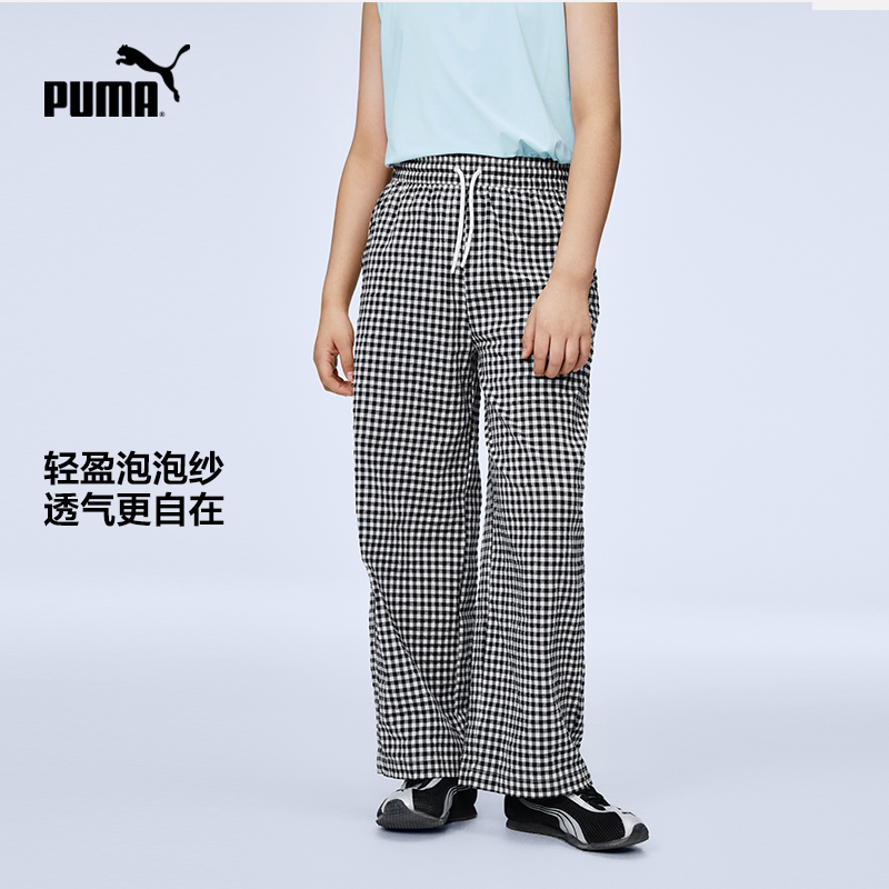 PUMA彪马童装26春季新款儿童长裤泡泡纱时髦衬衫裤子网格直筒裤