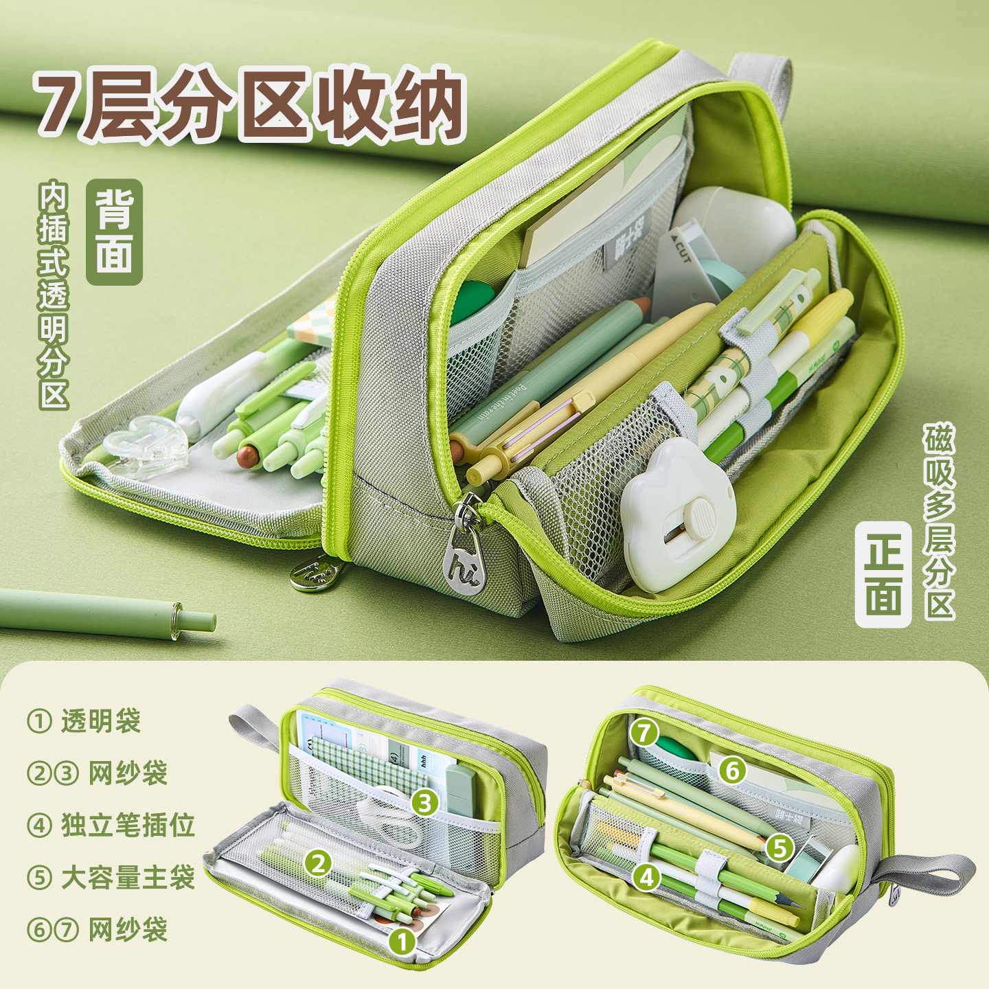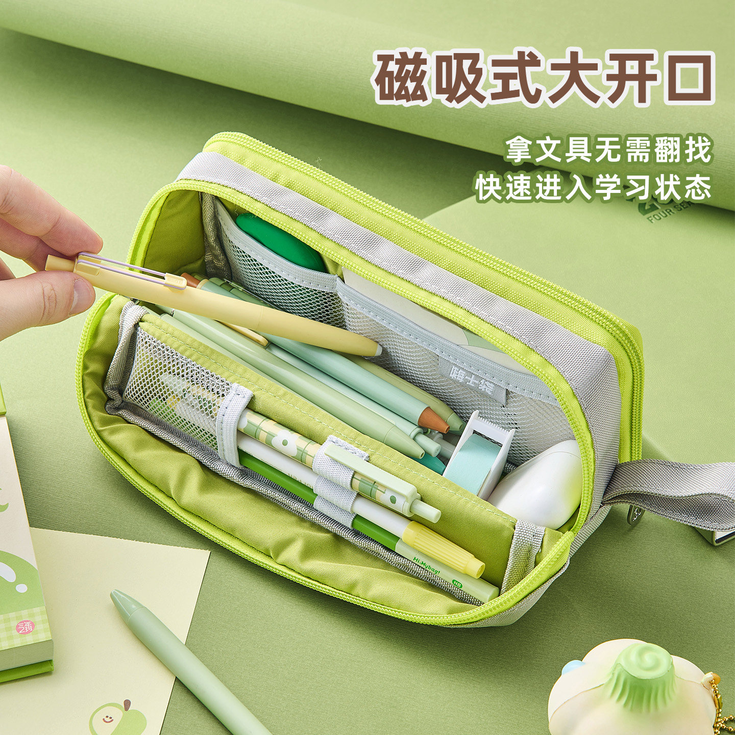三年二班*嗨士袋 磁吸奶砖笔袋大容量2025新款高颜值ins风简约文具盒透明痛包男孩女孩小学生2026超火笔袋