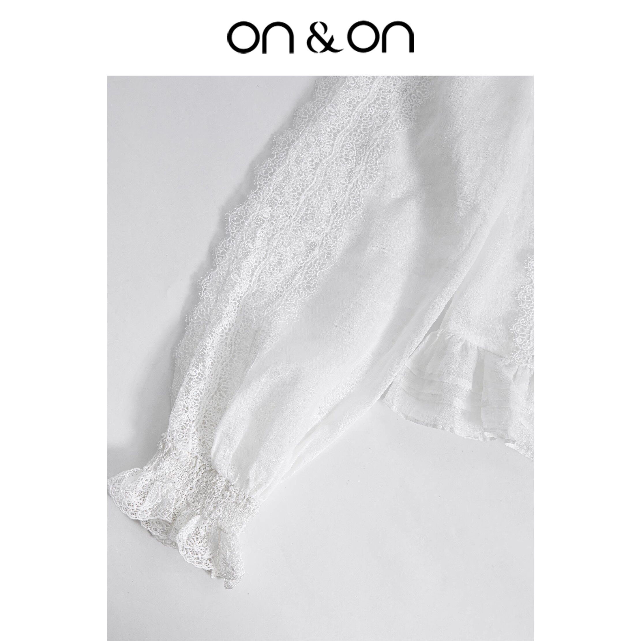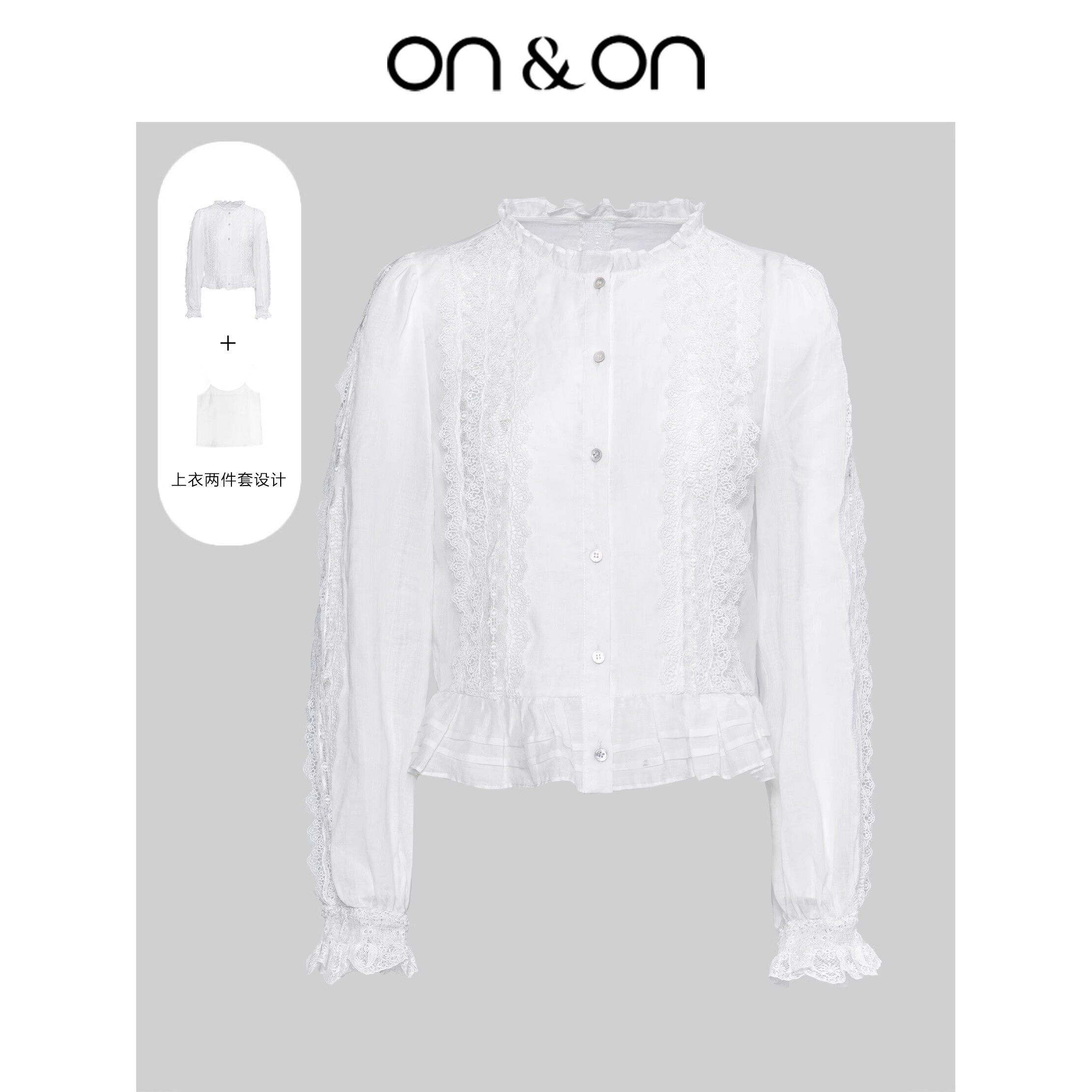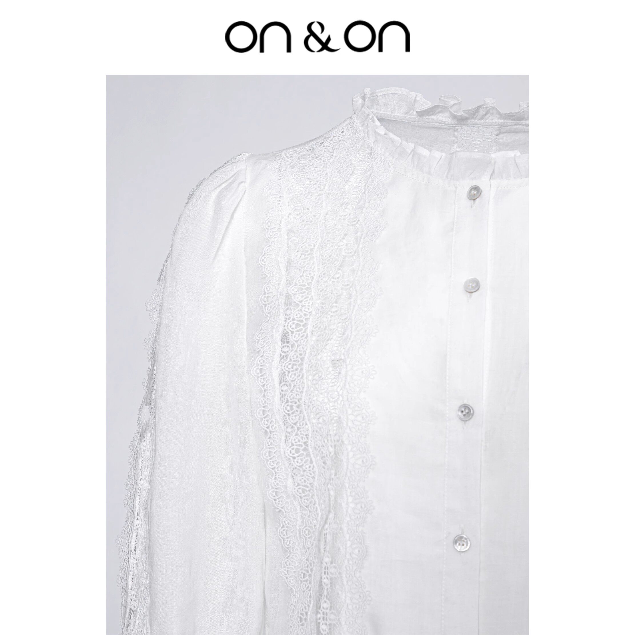 ON&ON/安乃安秋冬新款法式宫廷蕾丝苎麻拼接通勤时尚长袖衬衫