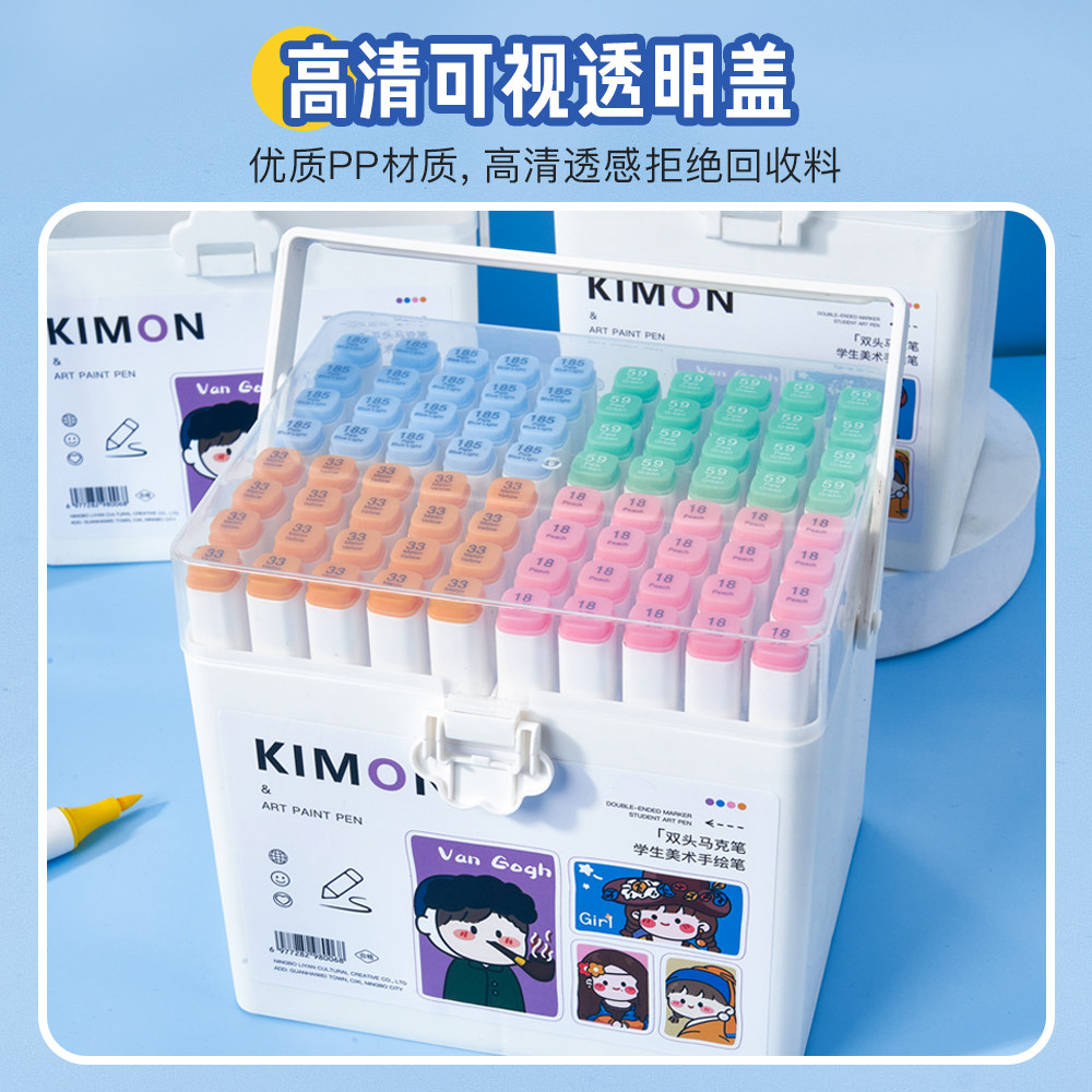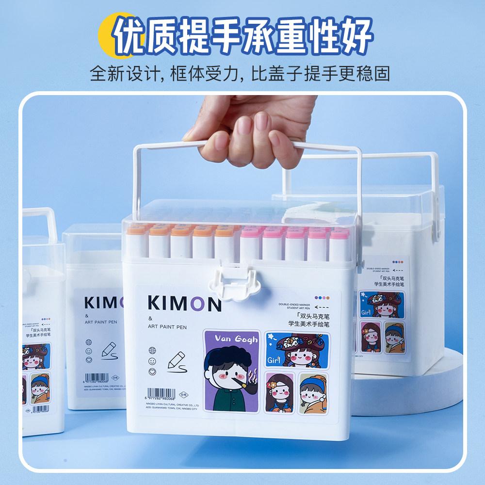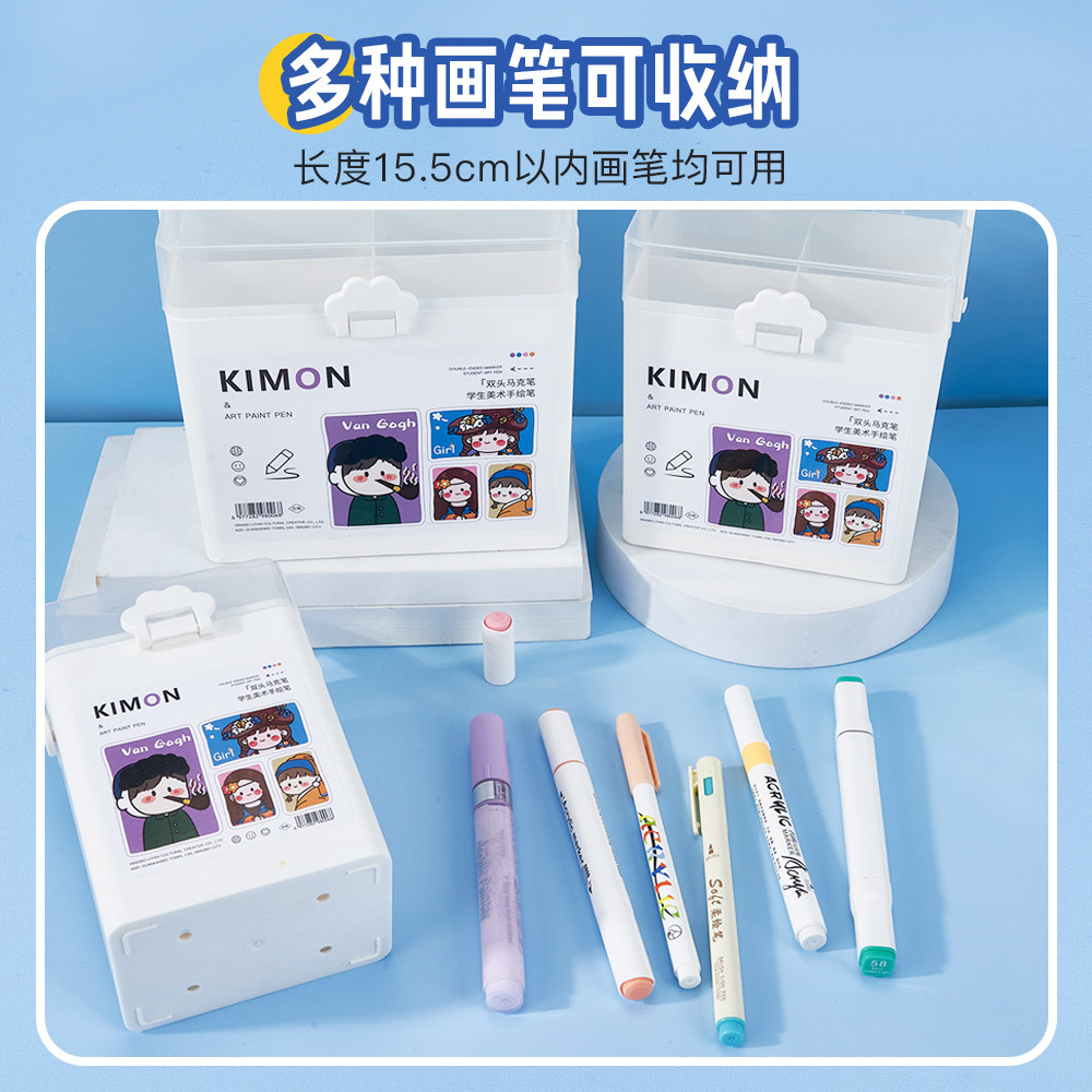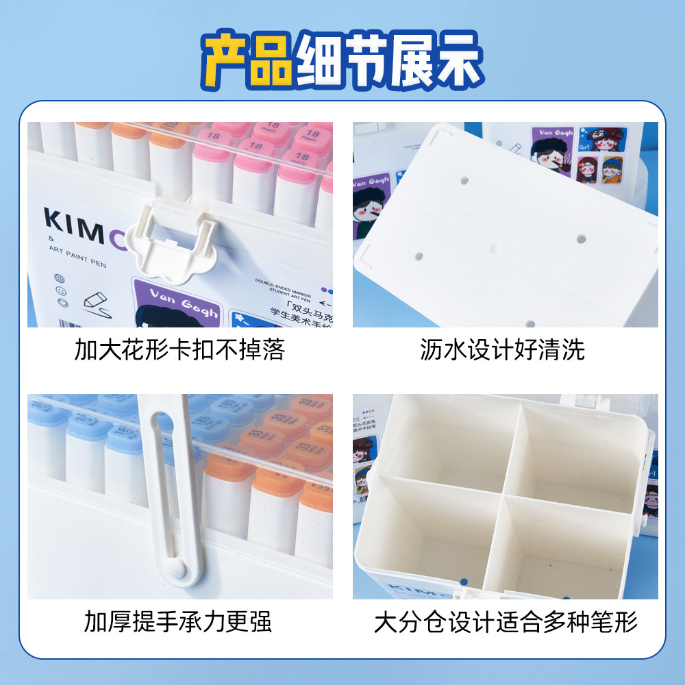手提马克笔收纳盒学生画笔收纳笔筒文具专用透明通用塑料盒丙烯马克笔多功能文具盒水彩笔收纳桶分格整理盒子