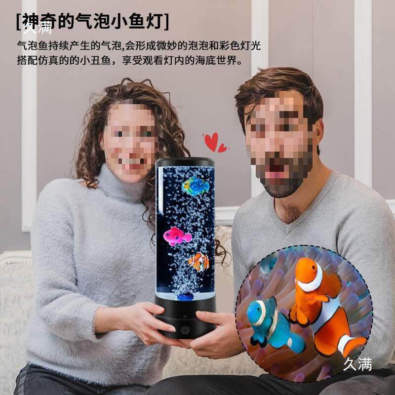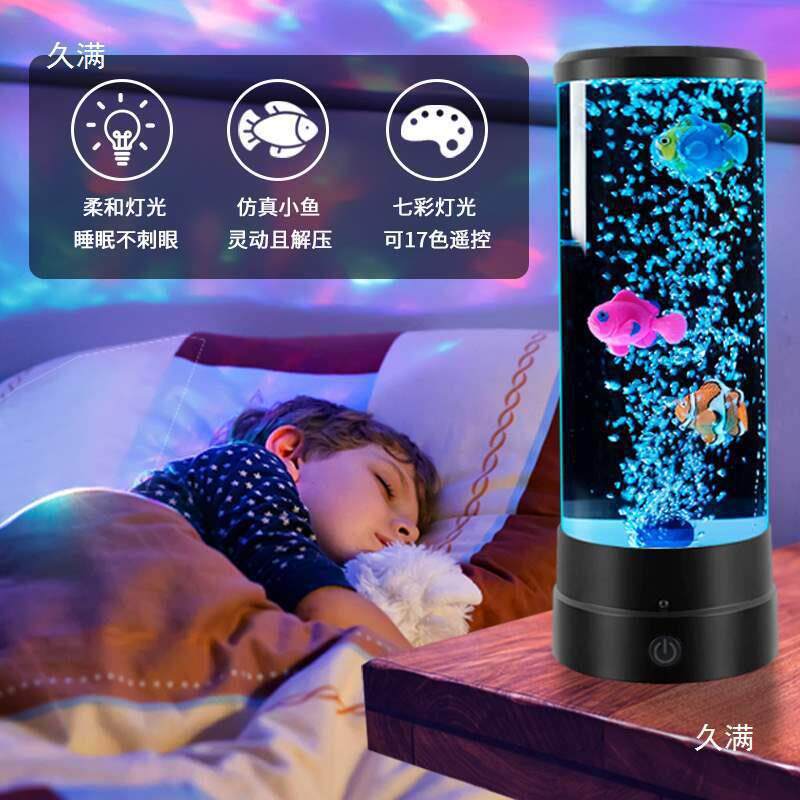 水母灯水柱气泡鱼灯七彩变色氛围台灯悬浮小夜灯卧室装饰灯垒德株