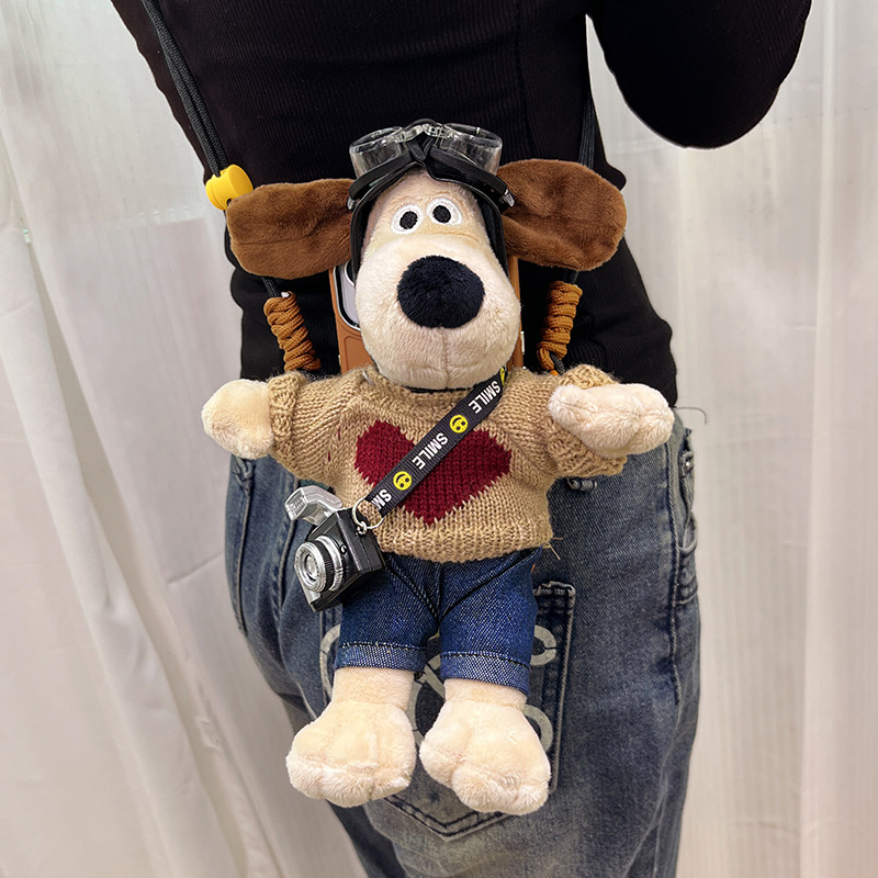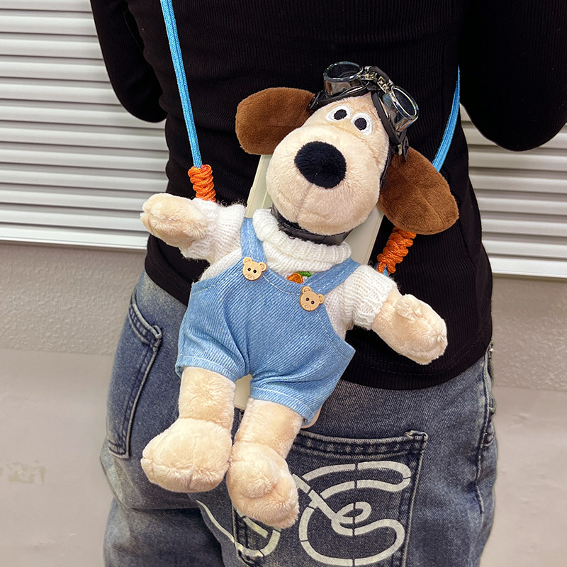 手机背夹斜跨背带链手机壳通用可爱卡通掌门狗公仔挂件挂绳可拆卸