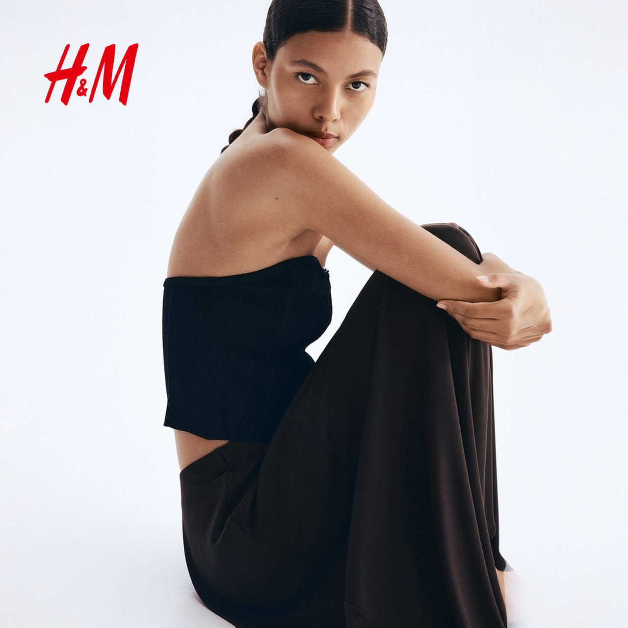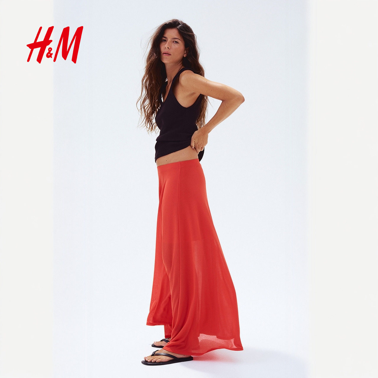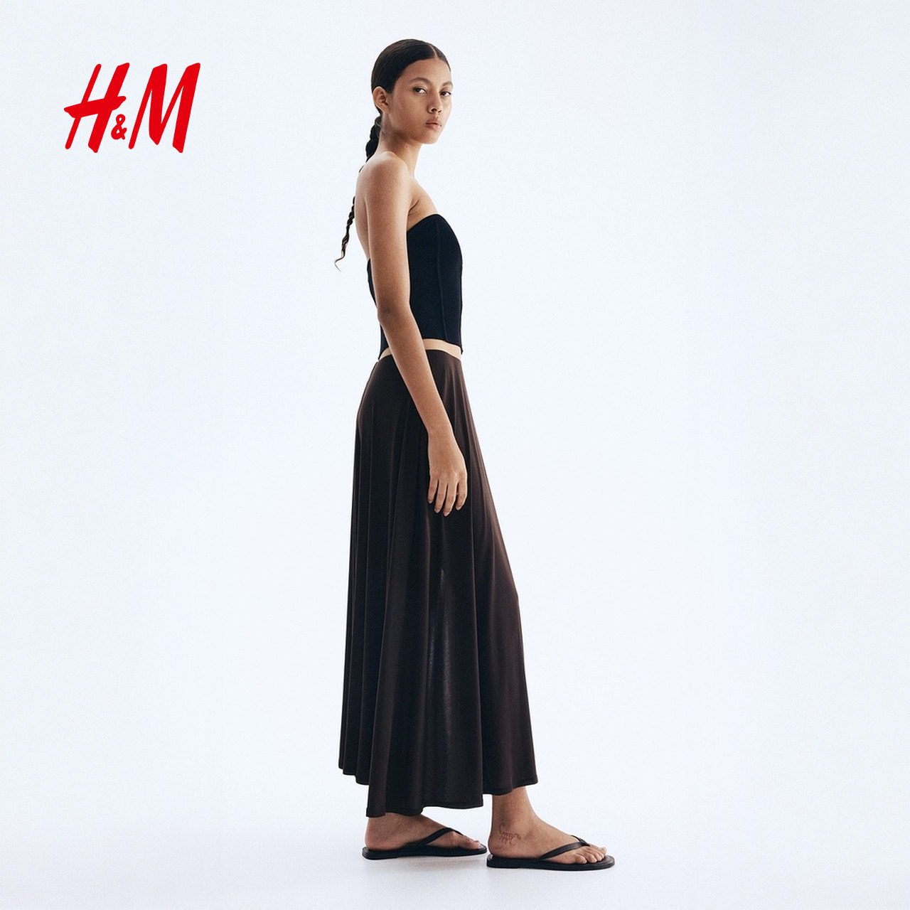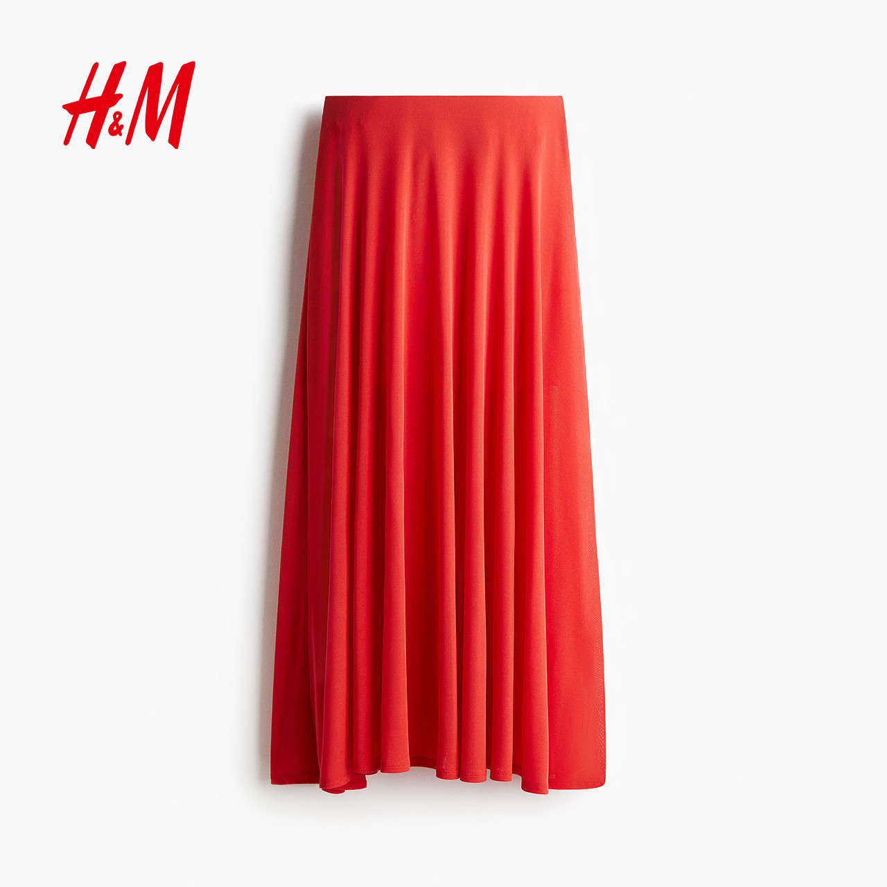 HM女士半身裙春季长款百褶A字汗布半身裙1291289