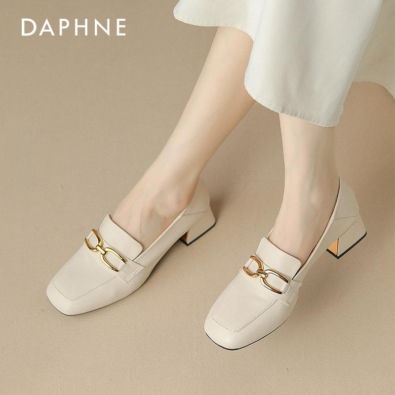 达芙妮乐福鞋女通勤女鞋2026春夏新款中跟单鞋方头粗跟穆勒鞋皮鞋