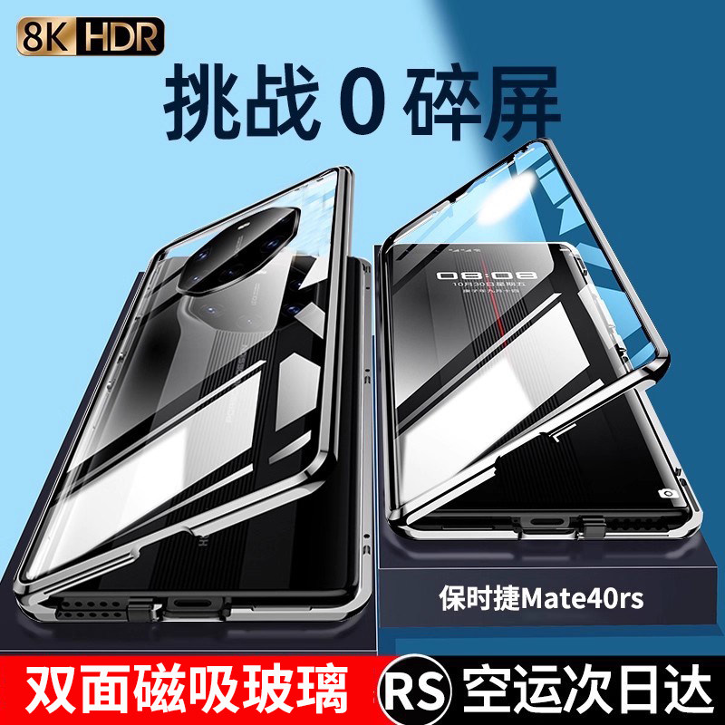 适用于华为保时捷mate40rs手机壳限量版sr防偷窥Porsche保护套全包防摔sr透明玻璃翻盖mt40rs磁吸meta男高级