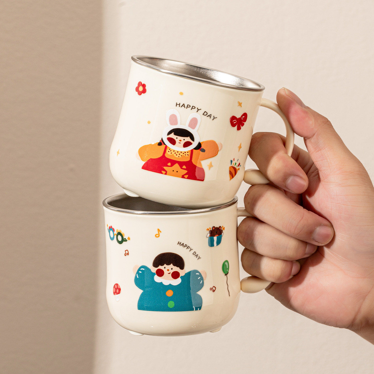 316不锈钢儿童水杯家用宝宝喝水专用杯子幼儿园牛奶杯学饮敞口杯