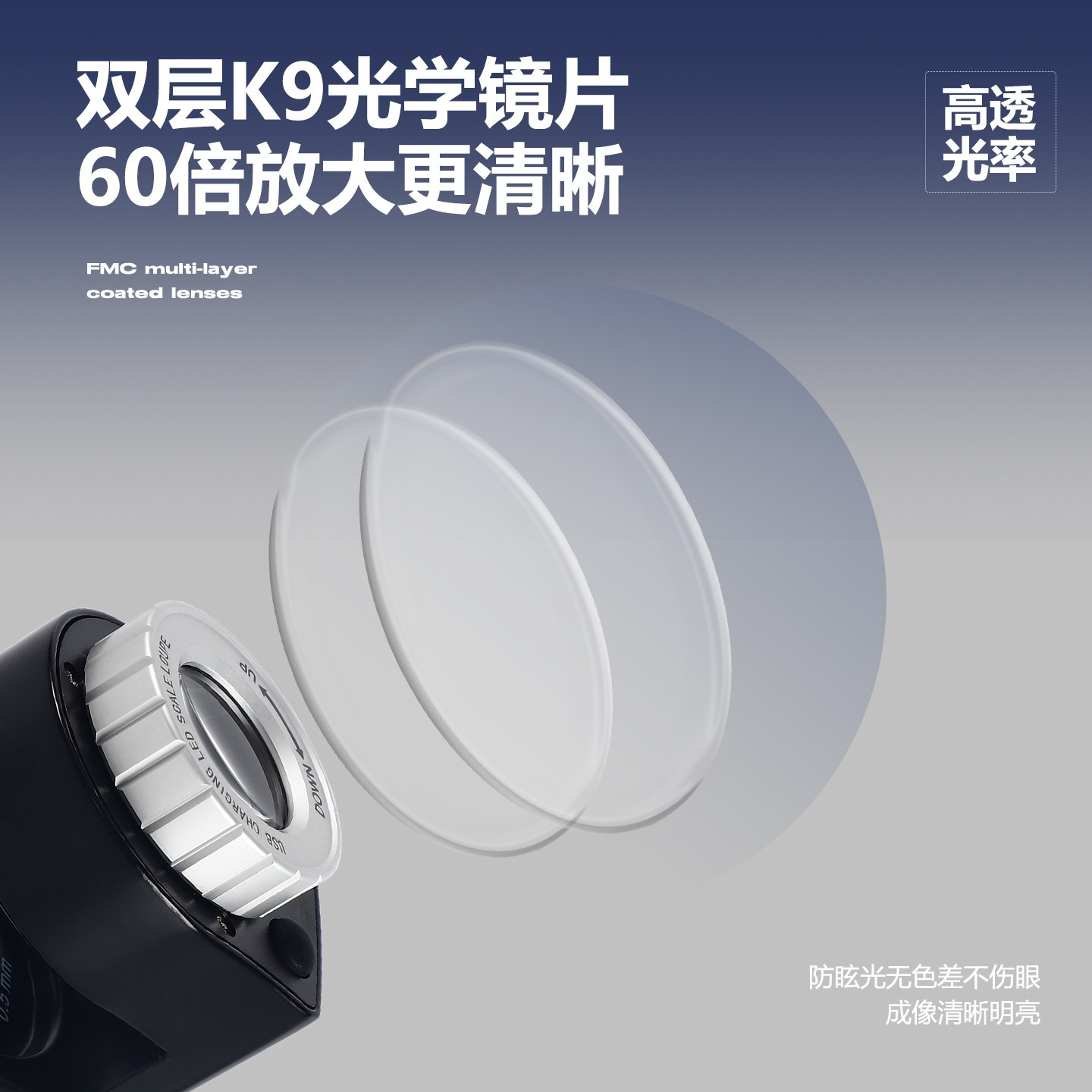 光学玻璃放大镜带灯刻度充电高清鉴定邮票钱币鉴定专用纺织印刷专业照布密度镜台式手机维修验钞鉴别可调焦距