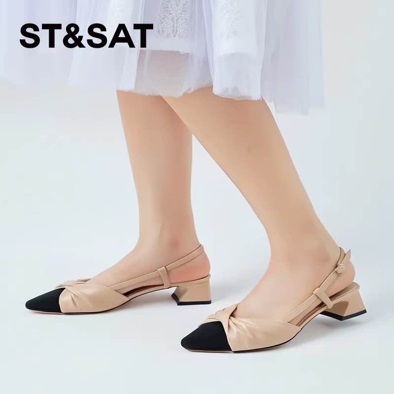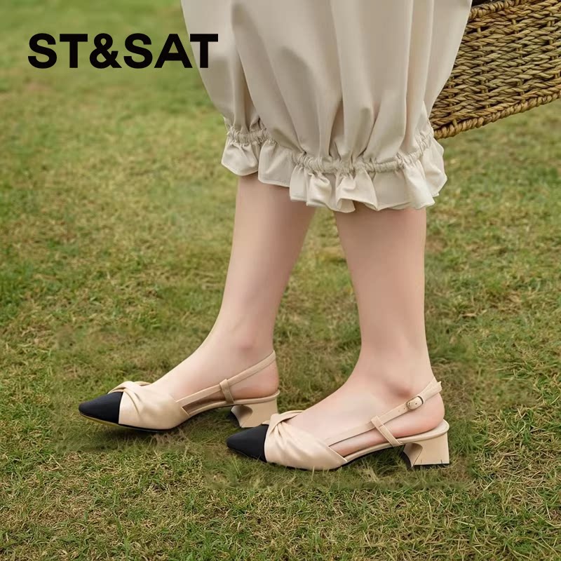 星期六小香风时装凉鞋春秋新款杏色方粗跟女凉鞋SS31114256