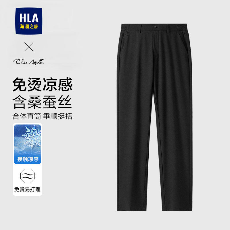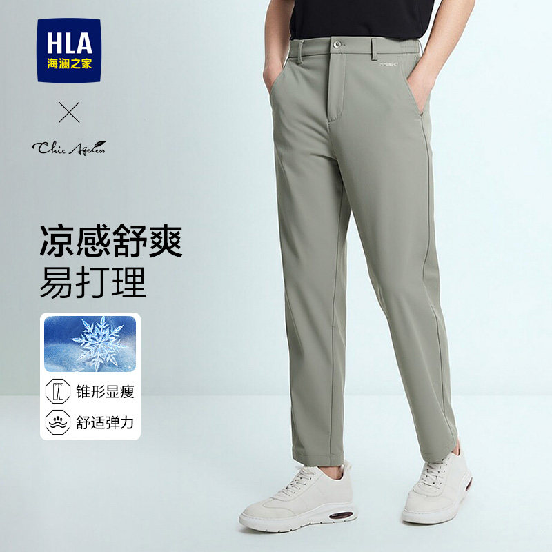 HLA/海澜之家轻商务凉感易打理直筒长裤26春夏季新款休闲裤子男士