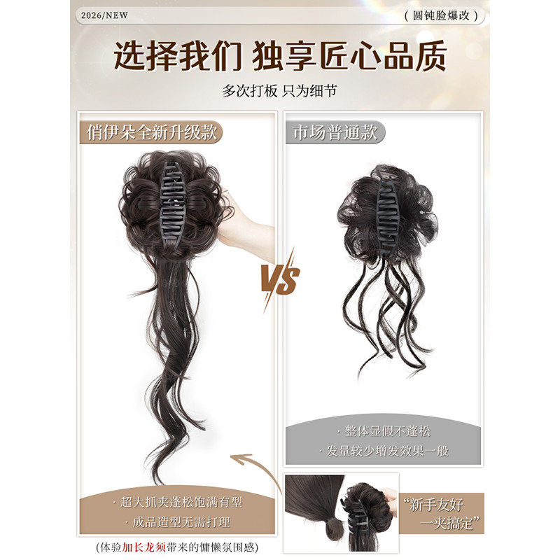 低扎丸子头假发鸡毛头抓夹盘发发包慵懒感造型头饰自然蓬松后脑勺