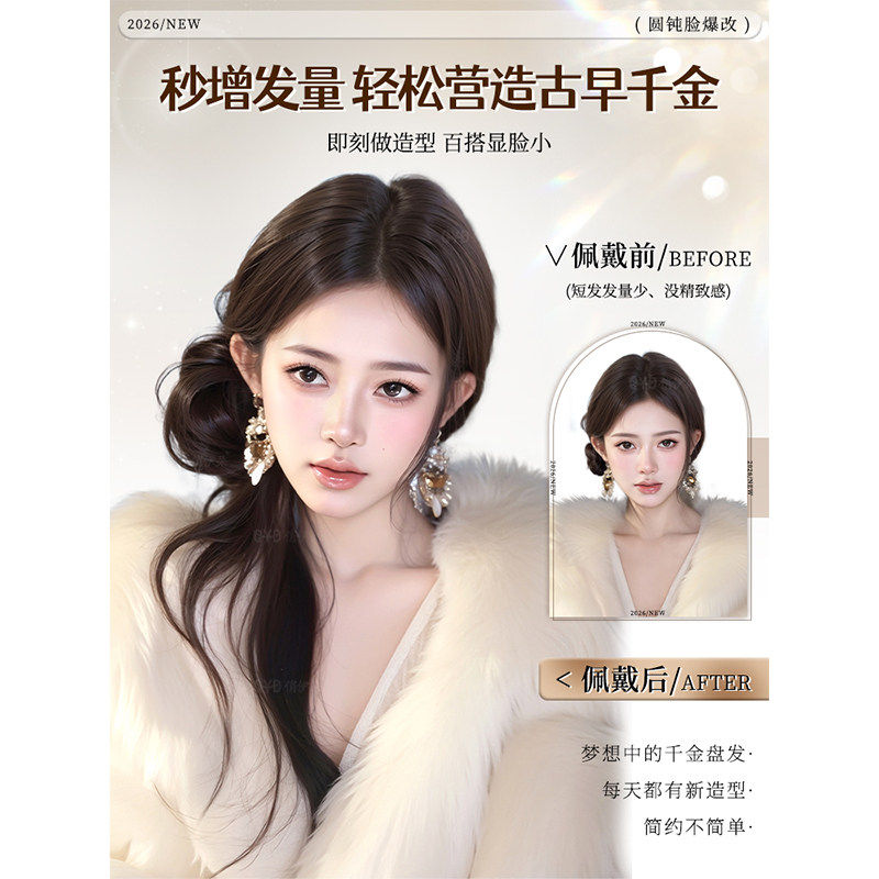 超长龙须丸子头假发抓夹古早感千金风蓬松花苞头发包发型仿真饱满