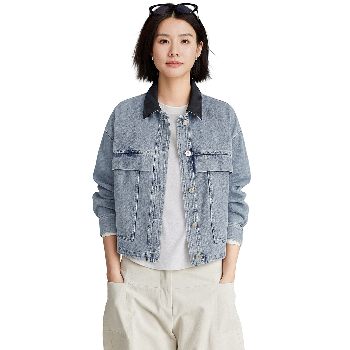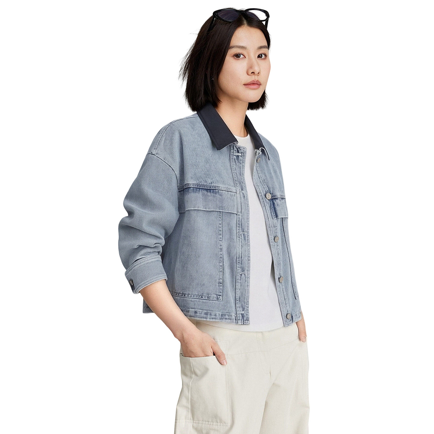 CLOUDSPACE【棉野牛仔】撞色拼接水洗牛仔慵懒短外套女2026春夹克