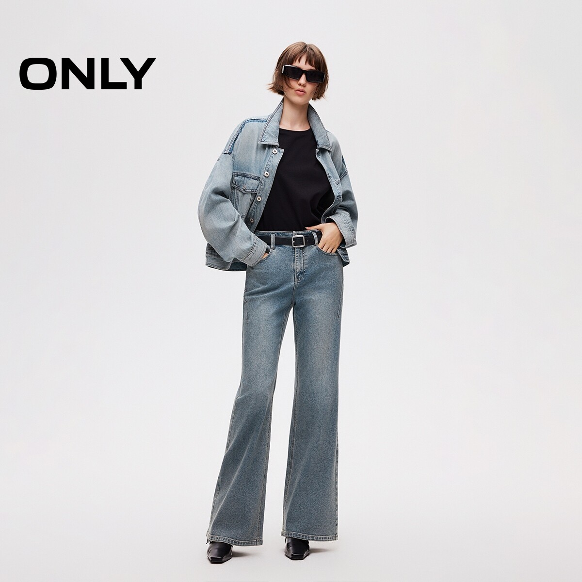 ONLY2026春季新款松弛感宽松实用多口袋落肩撞色水洗牛仔外套女