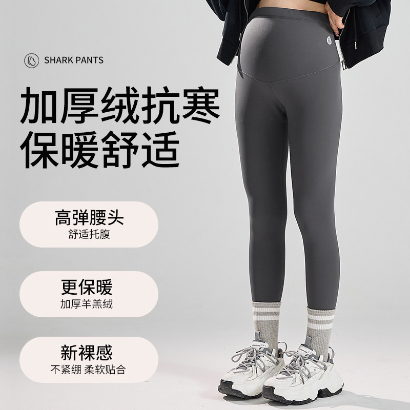 孕之彩孕妇冬季外穿打底裤加绒加厚鲨鱼裤孕期无痕不勒肚子孕妇裤