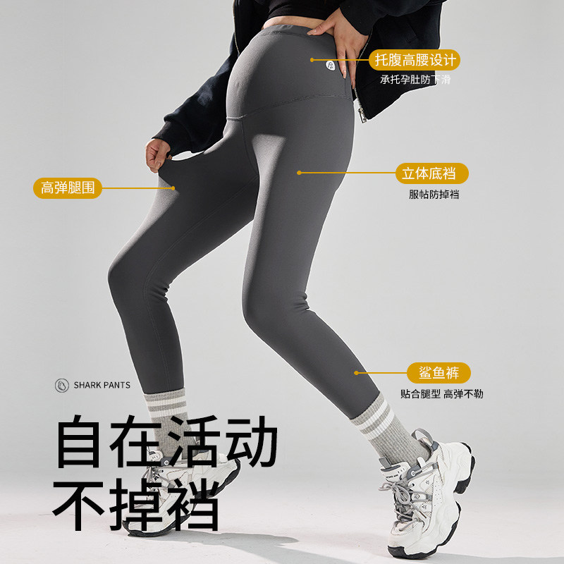 嫚熙裸感孕妇鲨鱼裤秋冬外穿加绒打底裤撑托提臀不勒肚瑜伽裤新款