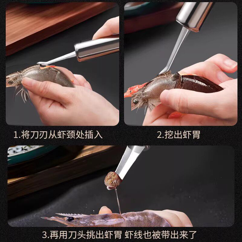 不锈钢去虾线六合一剔除刀挖虾胃剥虾壳取虾线神器挑剥虾器龙眼核
