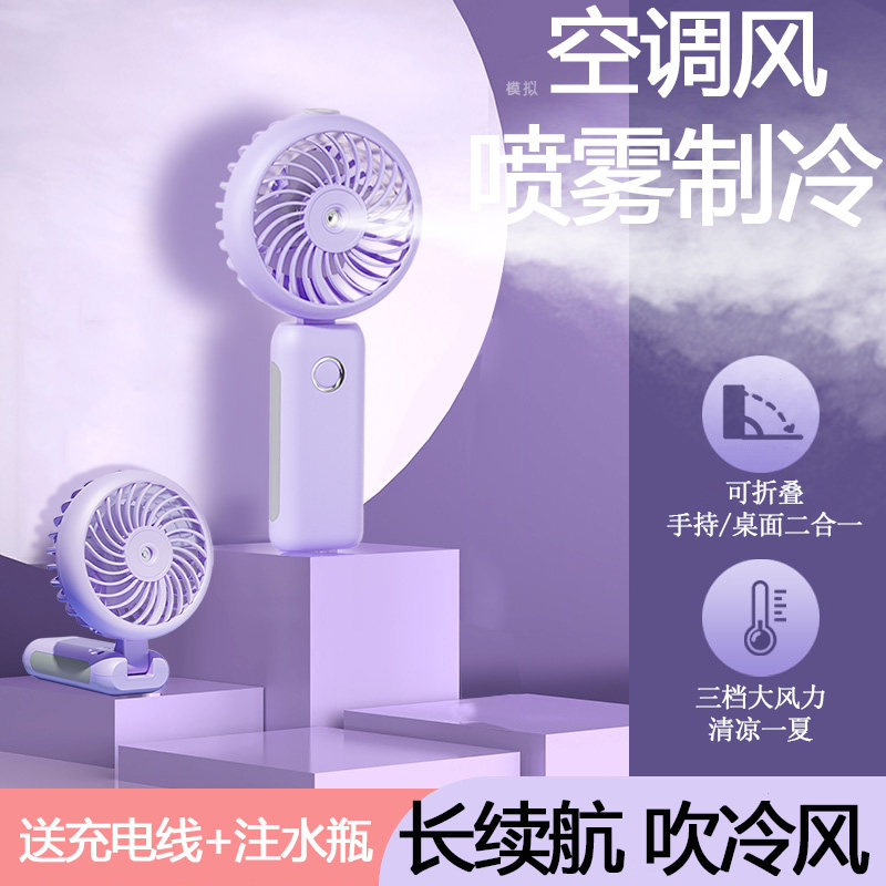 手持喷雾制冷小风扇便携式随身喷水冷风加湿器空调usb充电风扇小型折叠超静轻音办公室桌上学生挂脖降温神器f