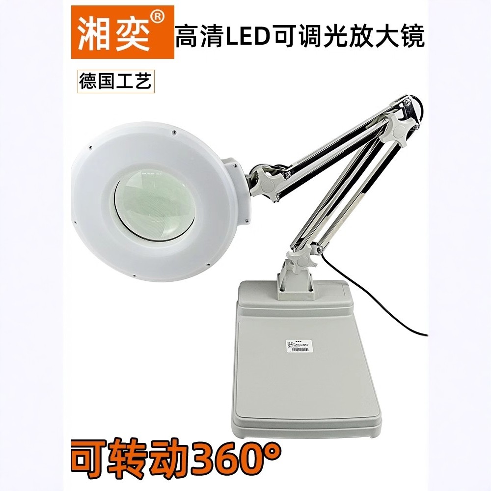 湘奕台式放大镜电子维修专用焊点手机电路板主板检测放大镜工业高清雕刻鉴定工作台灯桌面带灯放大镜折叠支架