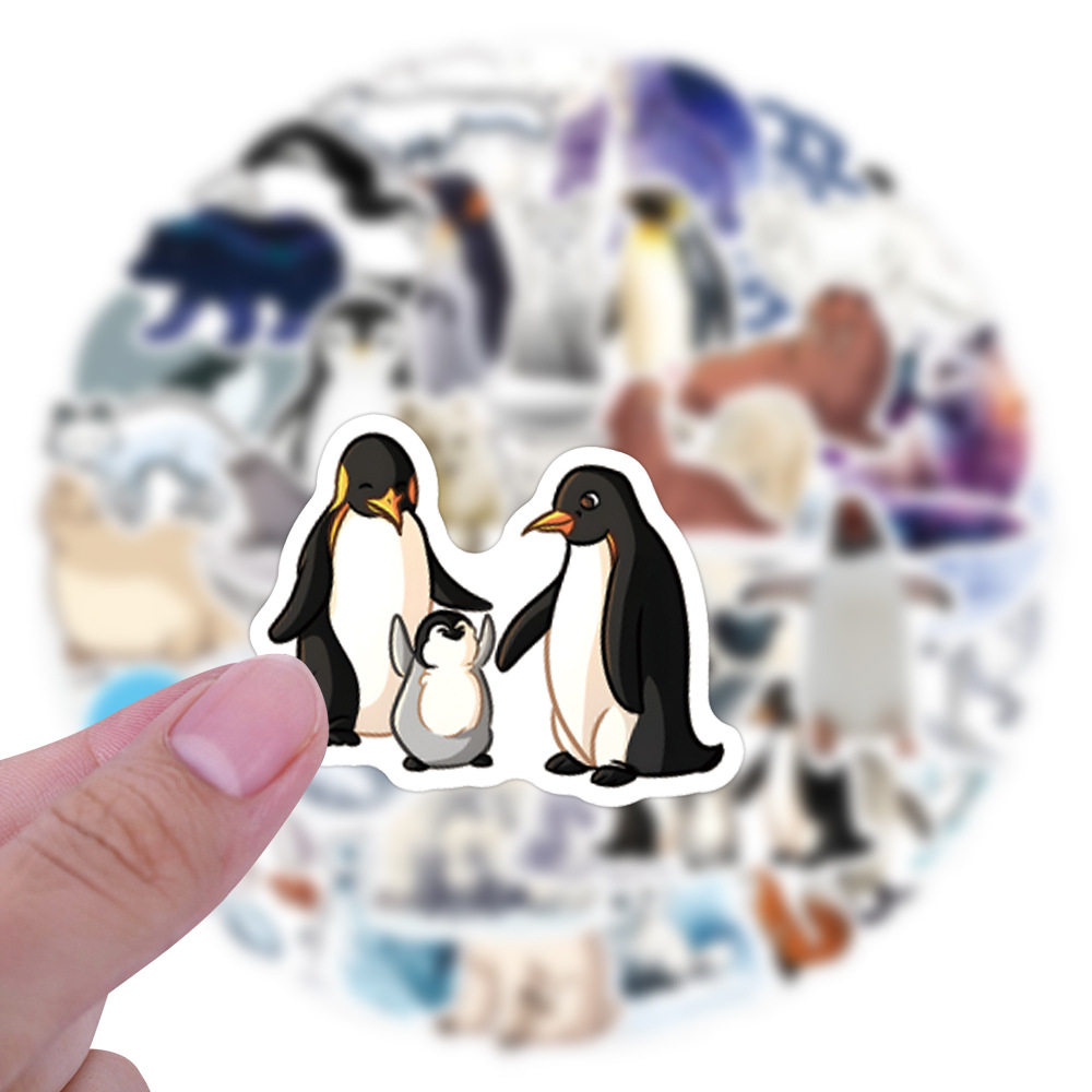 60张新款可爱北极动物涂鸦贴纸汽车行李箱水杯滑板车防水贴纸