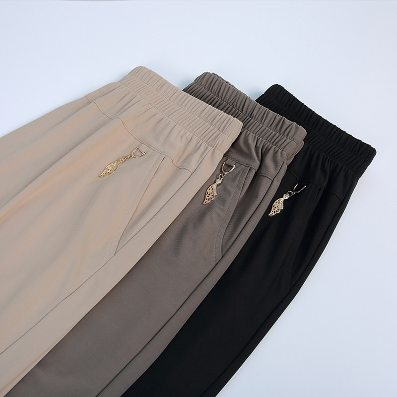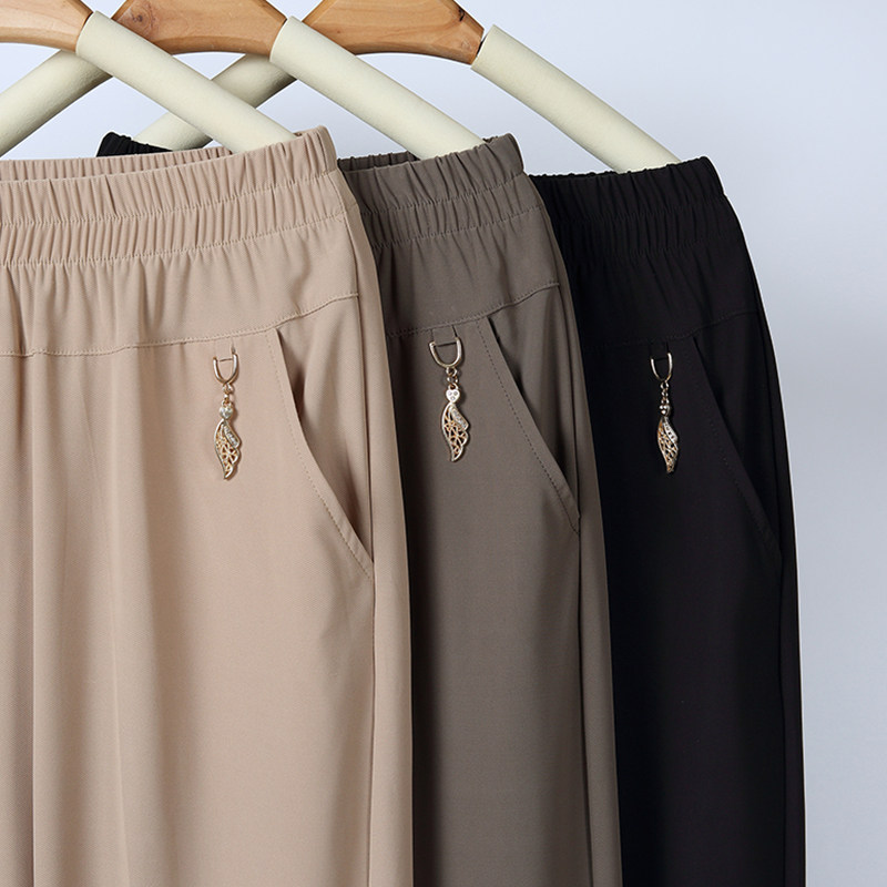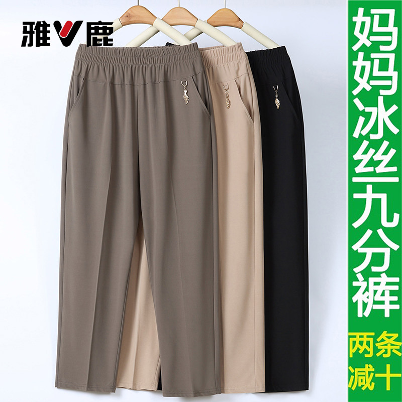 雅鹿正品妈妈九分裤夏季薄款中老年人直筒冰丝休闲裤宽松女裤黑色