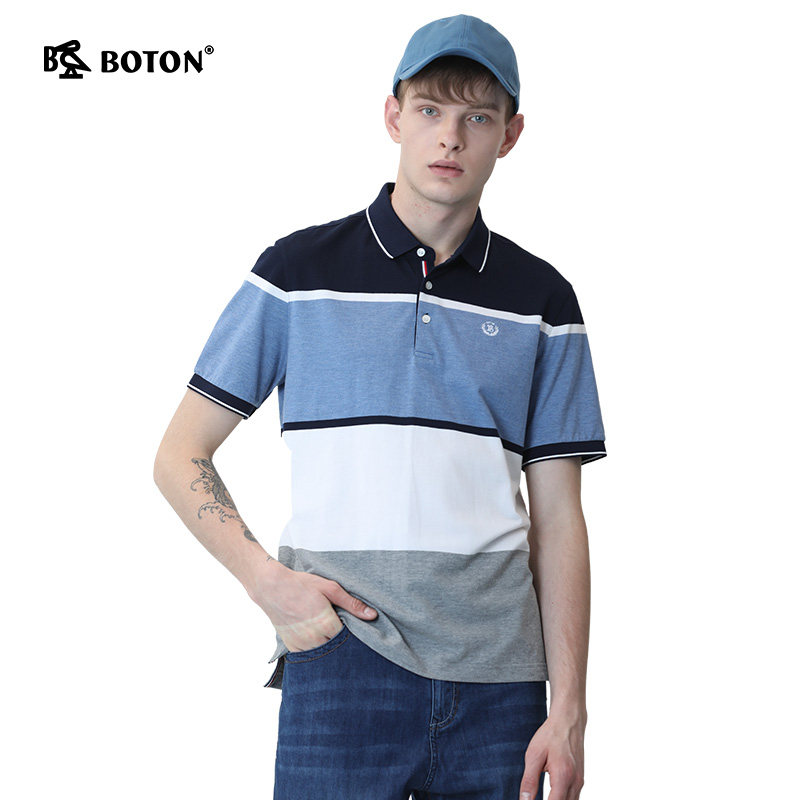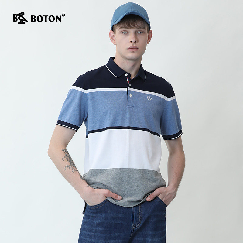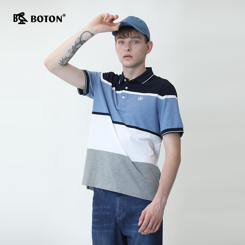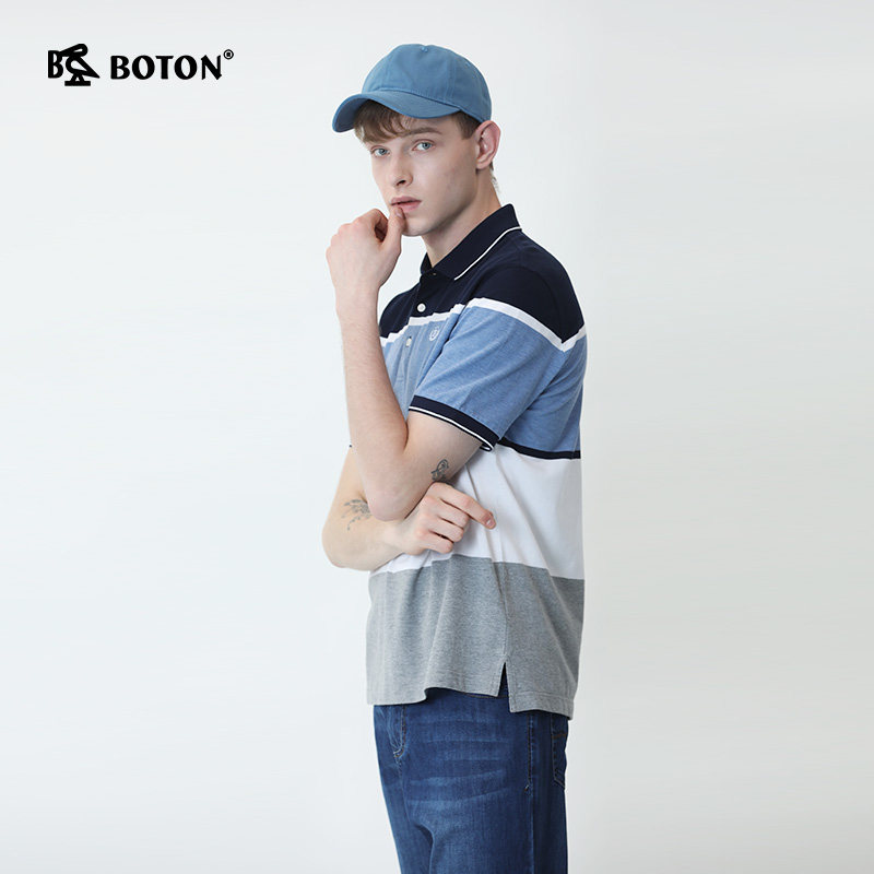 Boton/波顿夏季男士花纱纯棉翻领条纹短袖polo衫青春运动t恤衬衣
