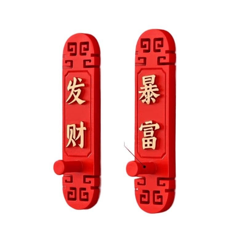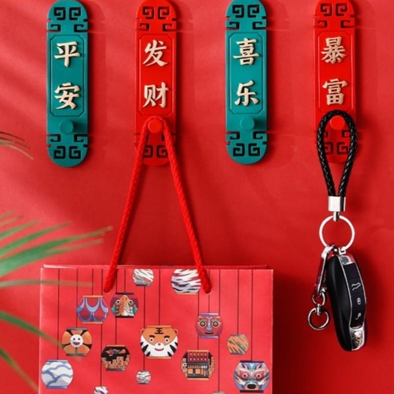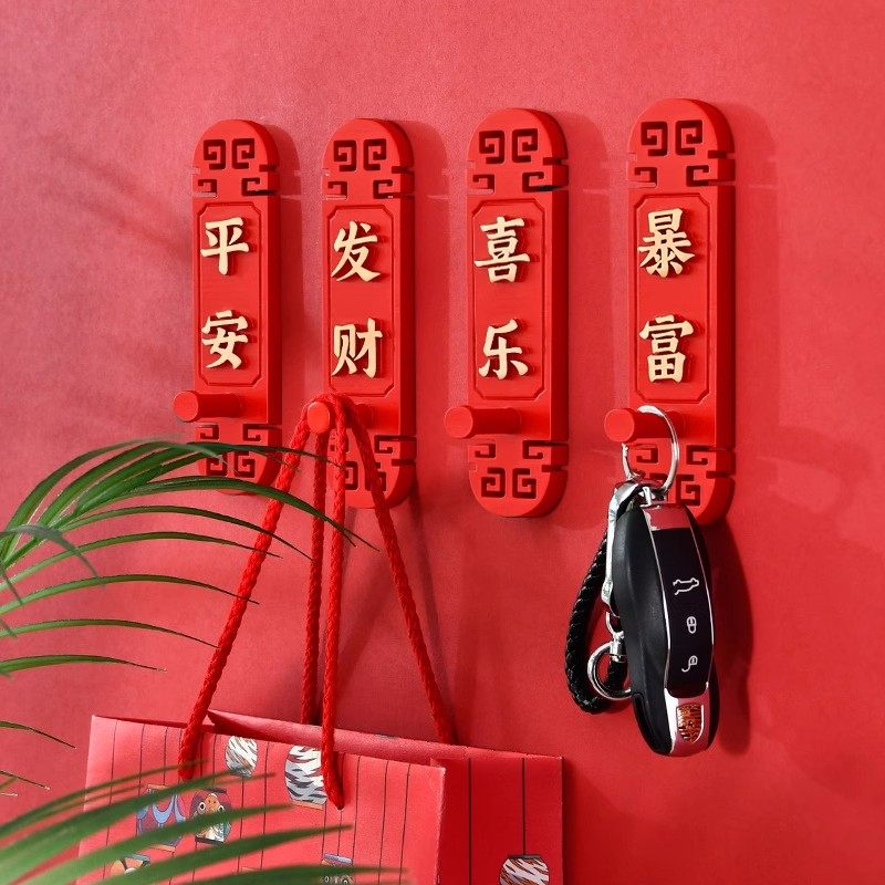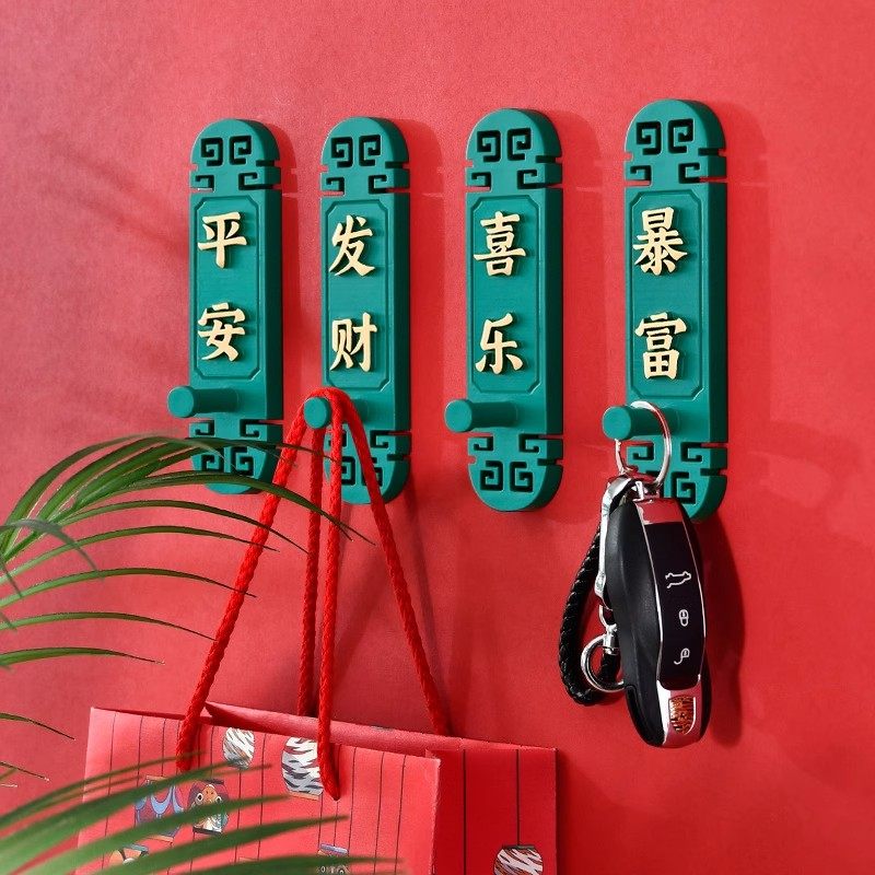 喜庆挂钩门后钥匙壁挂国潮玄关收纳入户口置物挂架粘钩贴中式承重