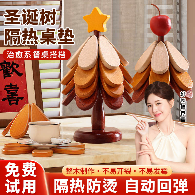 圣诞树隔热垫创意餐垫桌碗垫实木防烫耐高温锅垫餐边柜摆件家用