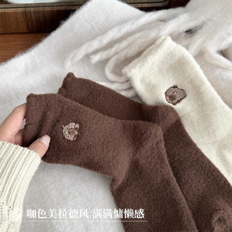 耐尔绵羊毛袜子女秋冬长袜加厚保暖复古百搭中筒袜ins潮堆堆袜
