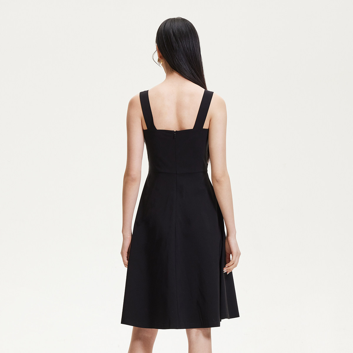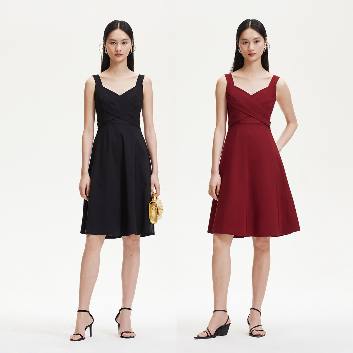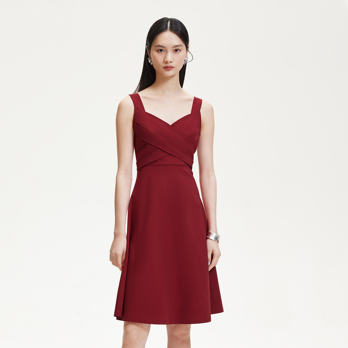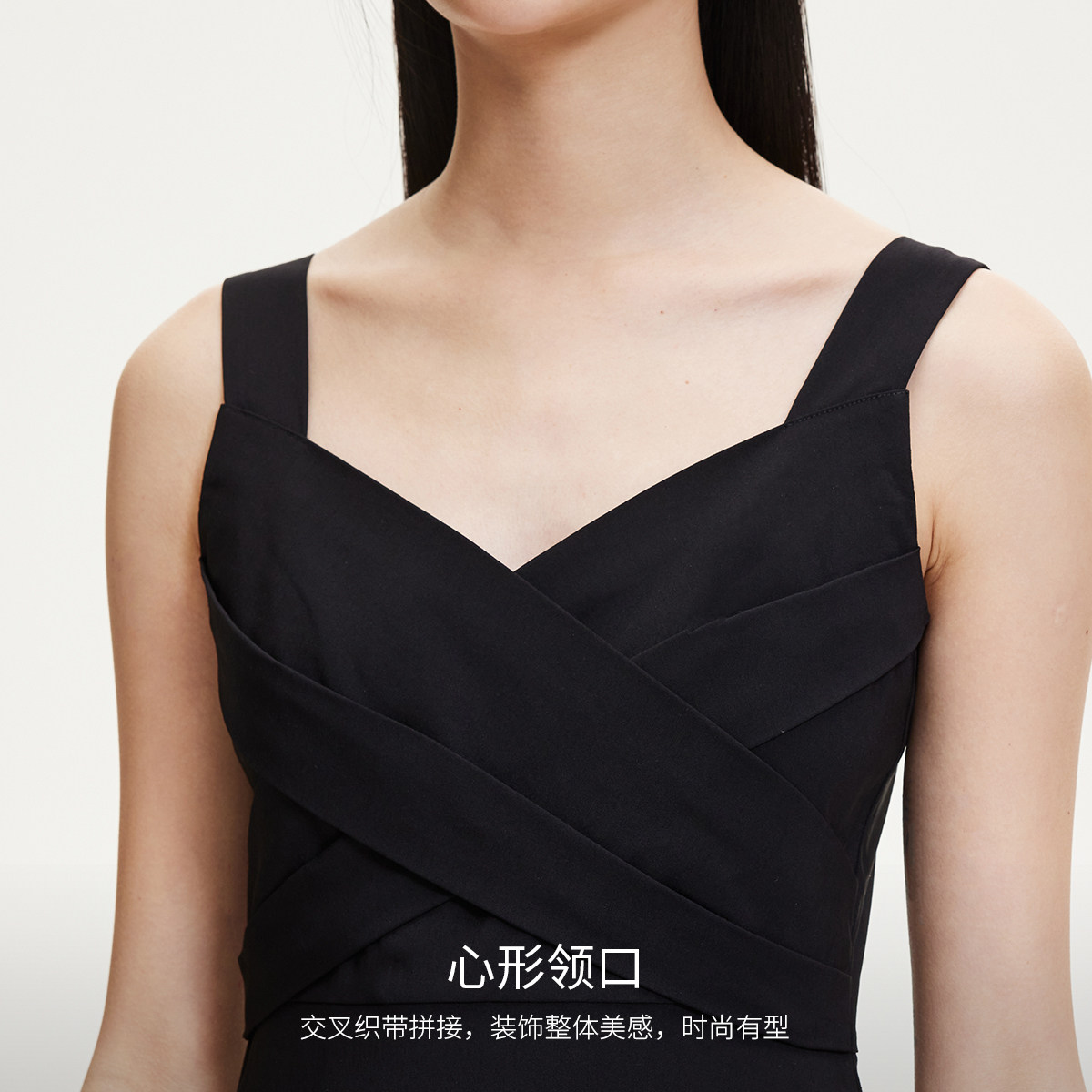 Vero Moda奥莱连衣裙2025秋季新款心形领口收腰交叉织带吊带裙子