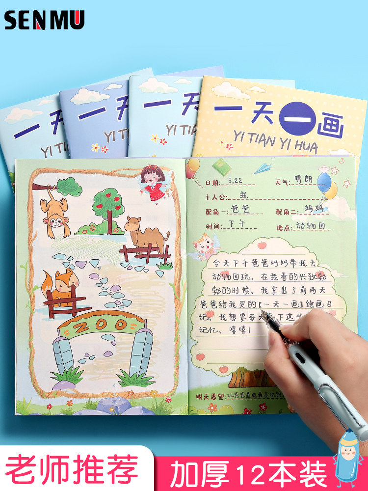 一天一画日记本小学生一二三年级少儿绘画a5卡通看图写话本记事本