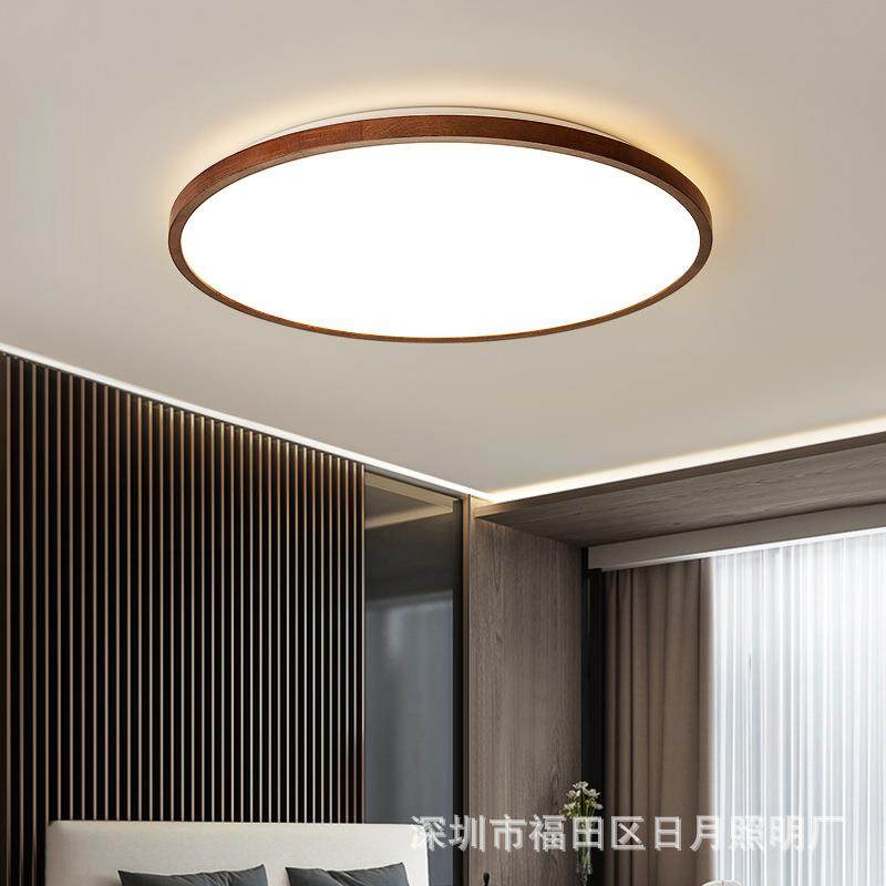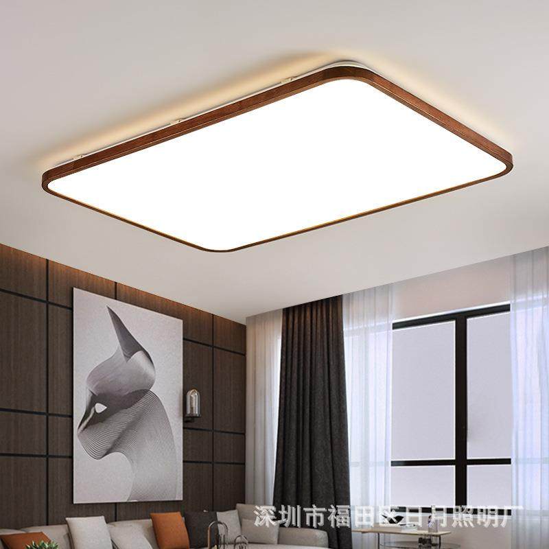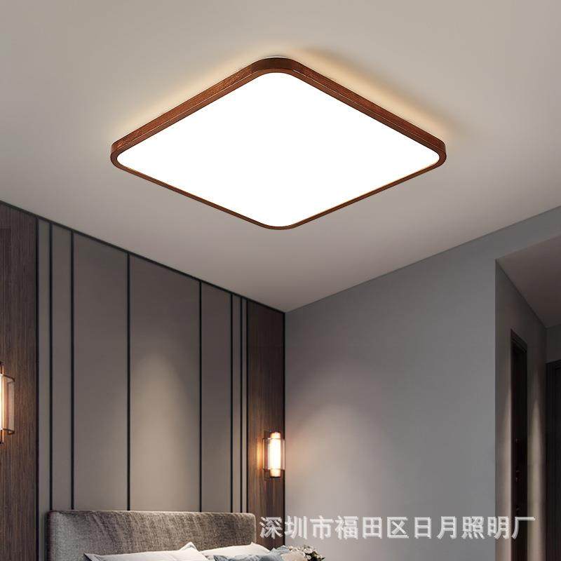 新中式吸顶灯胡桃木超薄阳台灯简约现代大气客厅灯长方温馨卧室灯