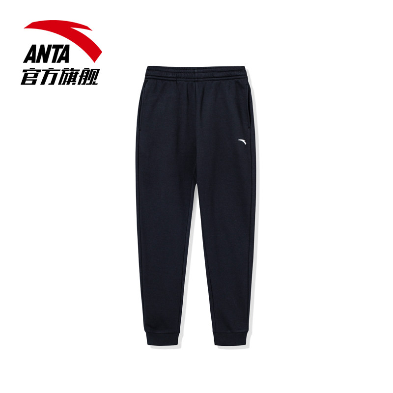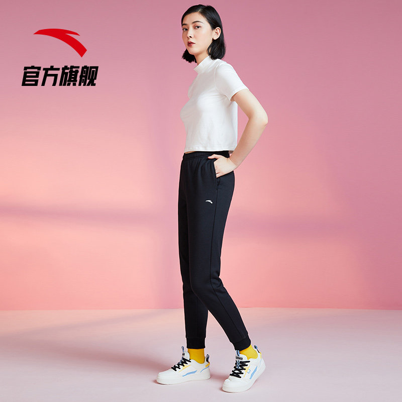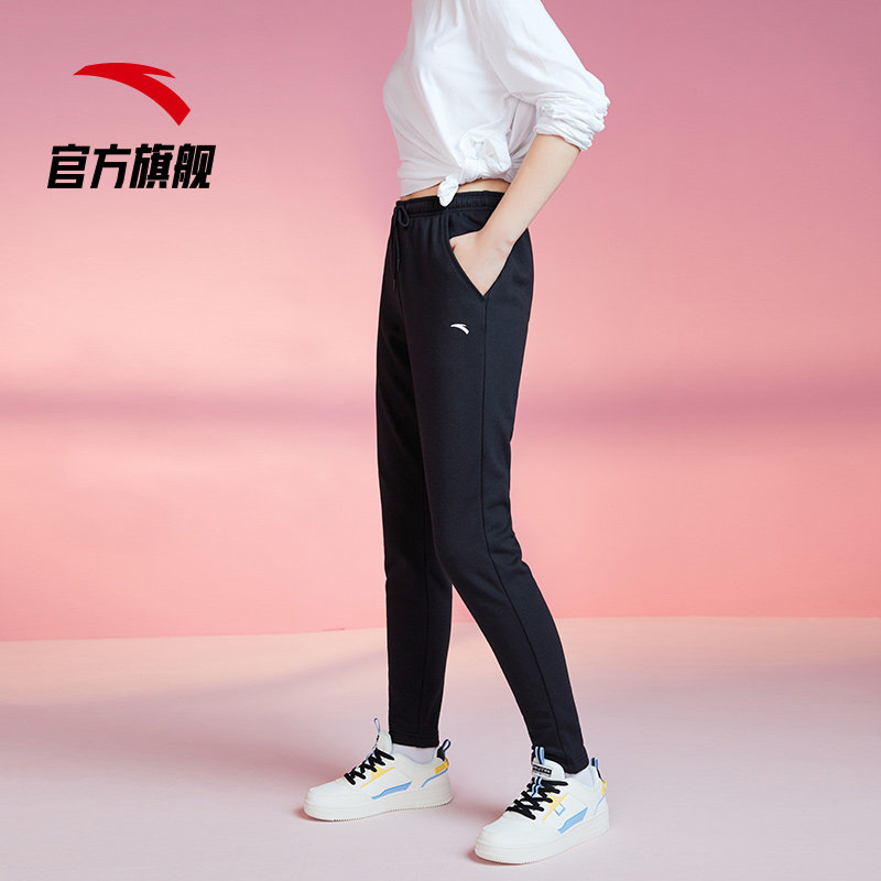 安踏运动长裤女款春季黑色百搭运动裤针织卫裤休闲跑步收口束脚裤