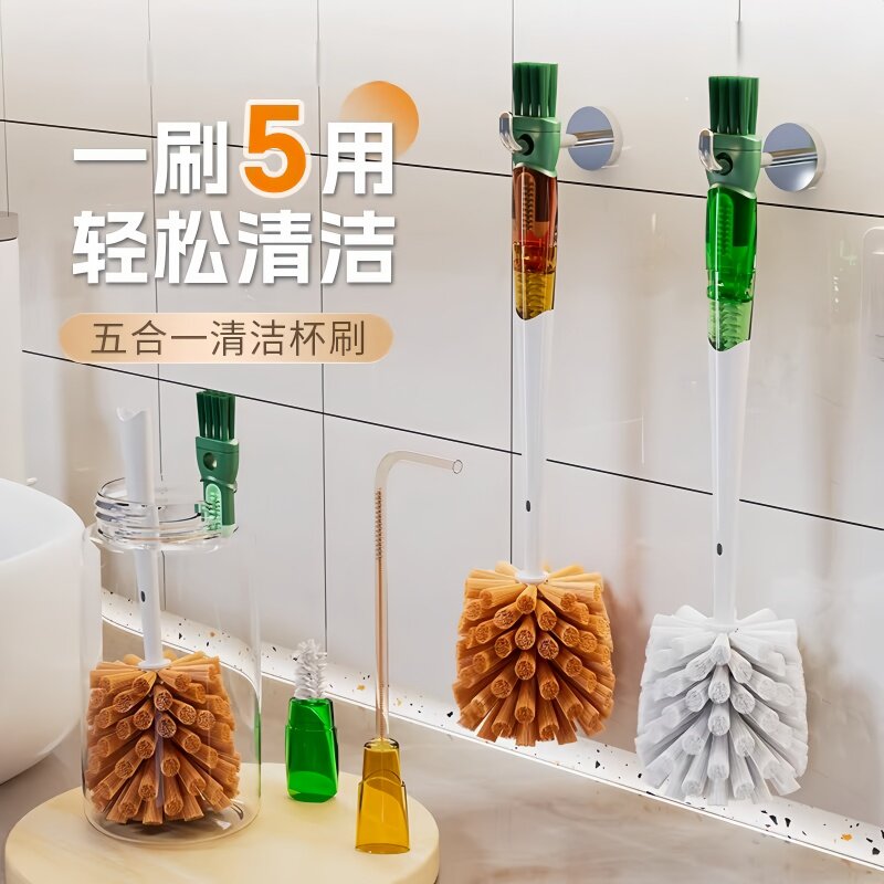 新款杯子刷清洗保温杯盖清洁刷五合一长柄奶瓶刷洗杯子吸管刷好物