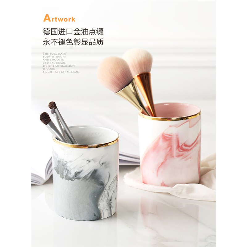 梳妆台桌面美妆化妆品梳子眉笔粉刷子置物收纳筒桶梳妆台桌面轻奢